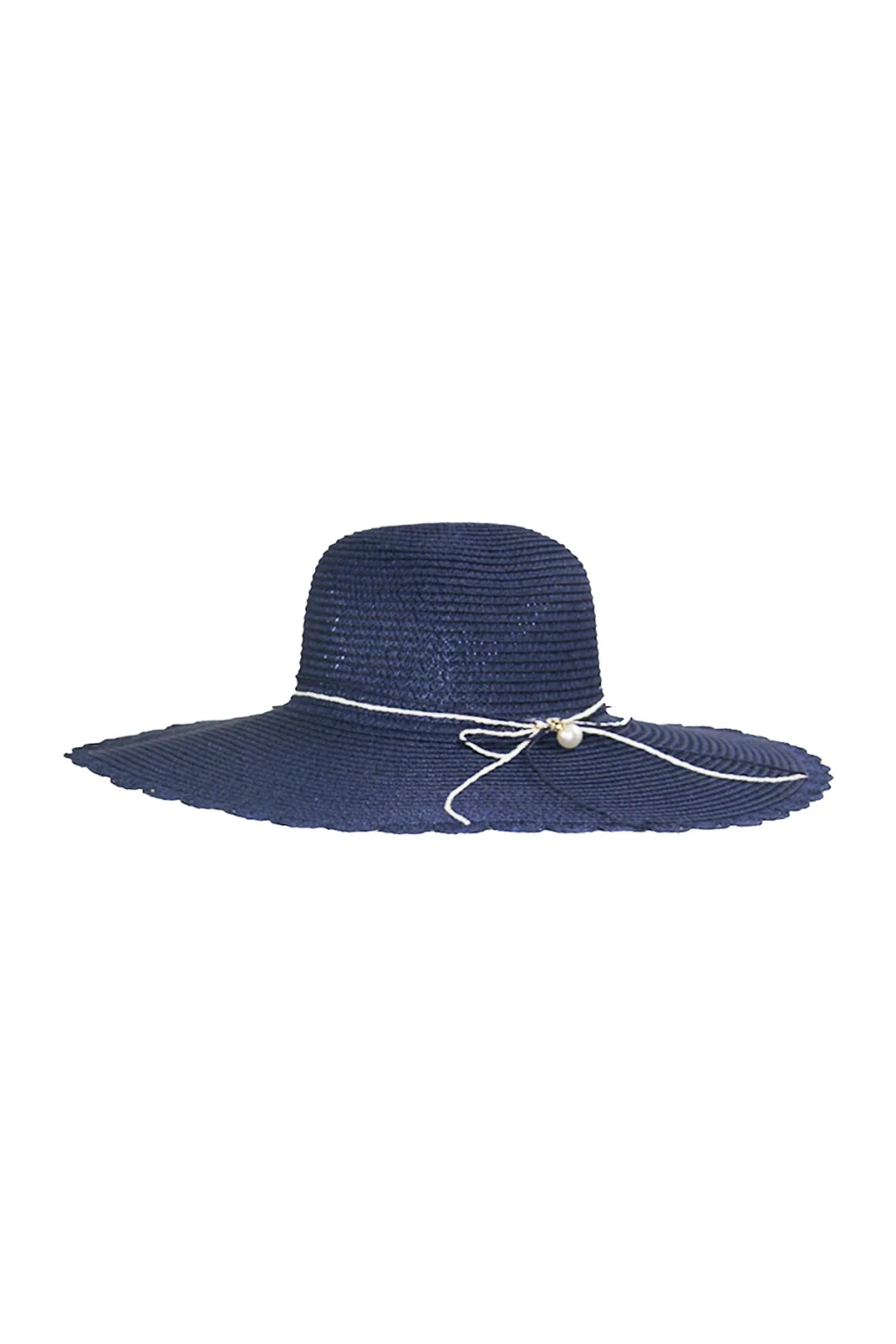 Geniş Kenarlı İncili Hasır Kadın Şapka 3871