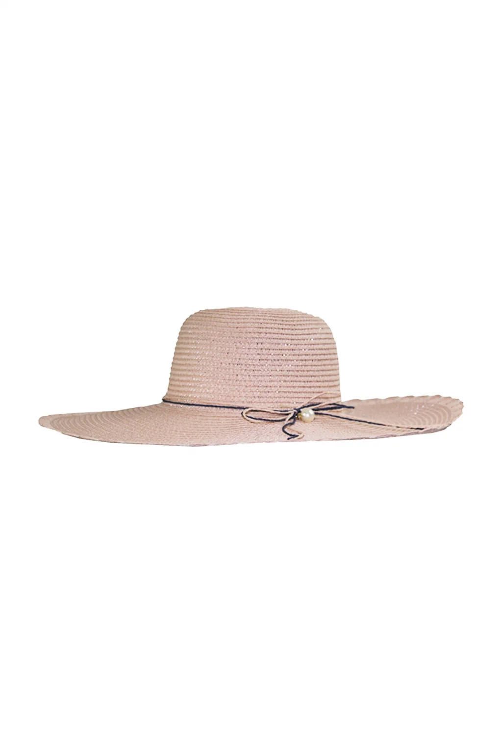 Geniş Kenarlı İncili Hasır Kadın Şapka 3871