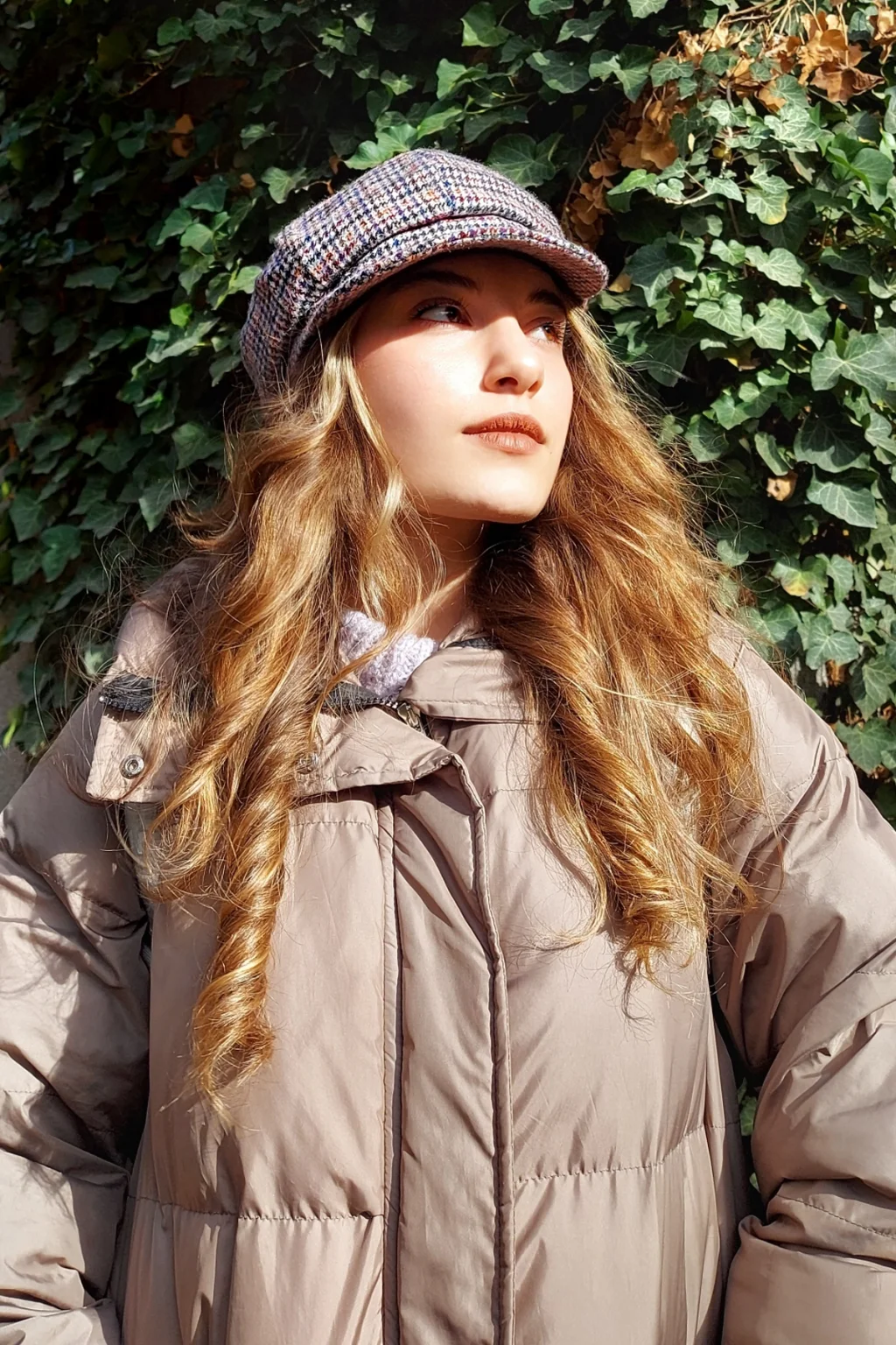 Kadın Kaptan Şapka 7449 Ekose Turuncu