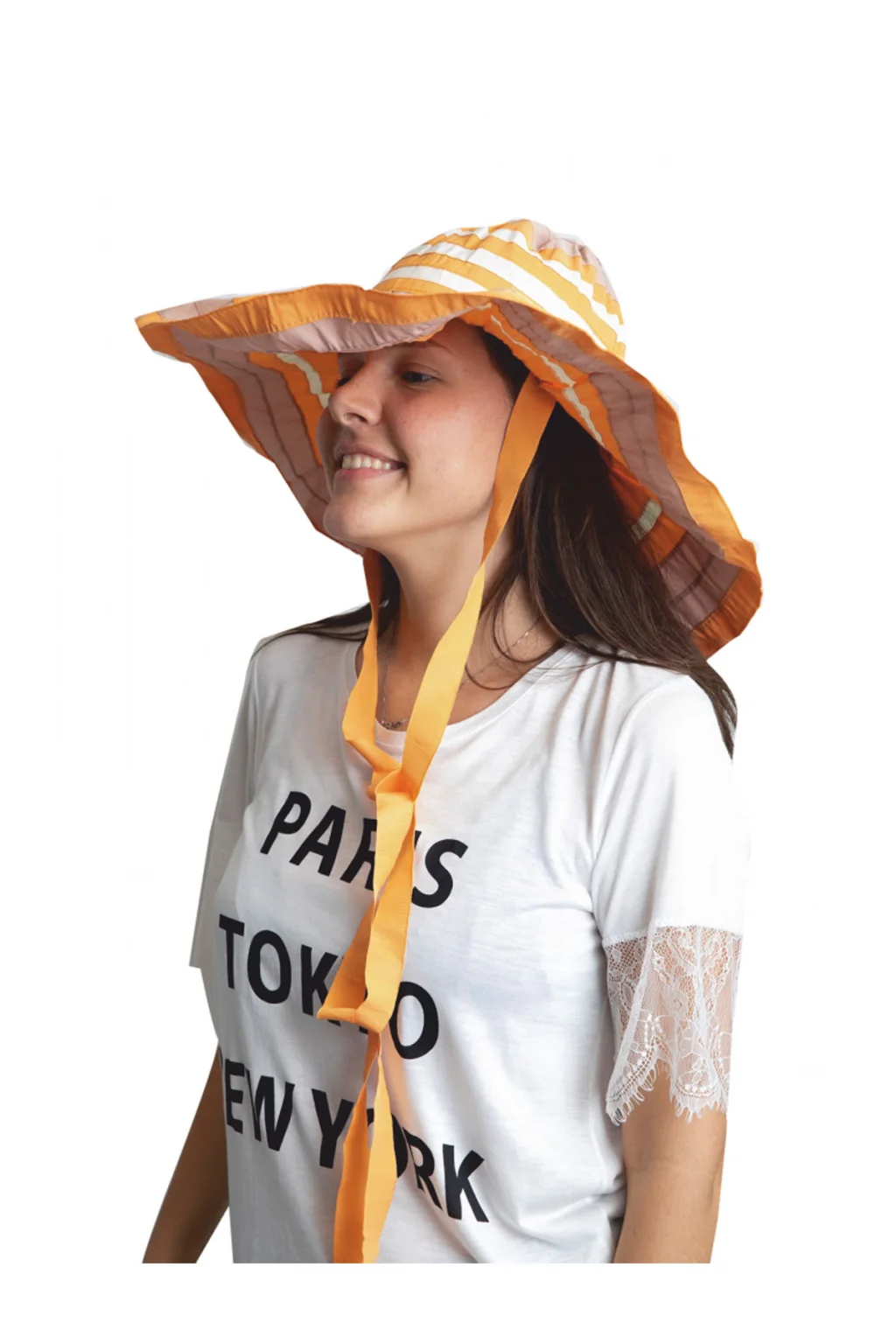 Yazlık Kadın Geniş Kenarlı Şeritli Şapka 5377