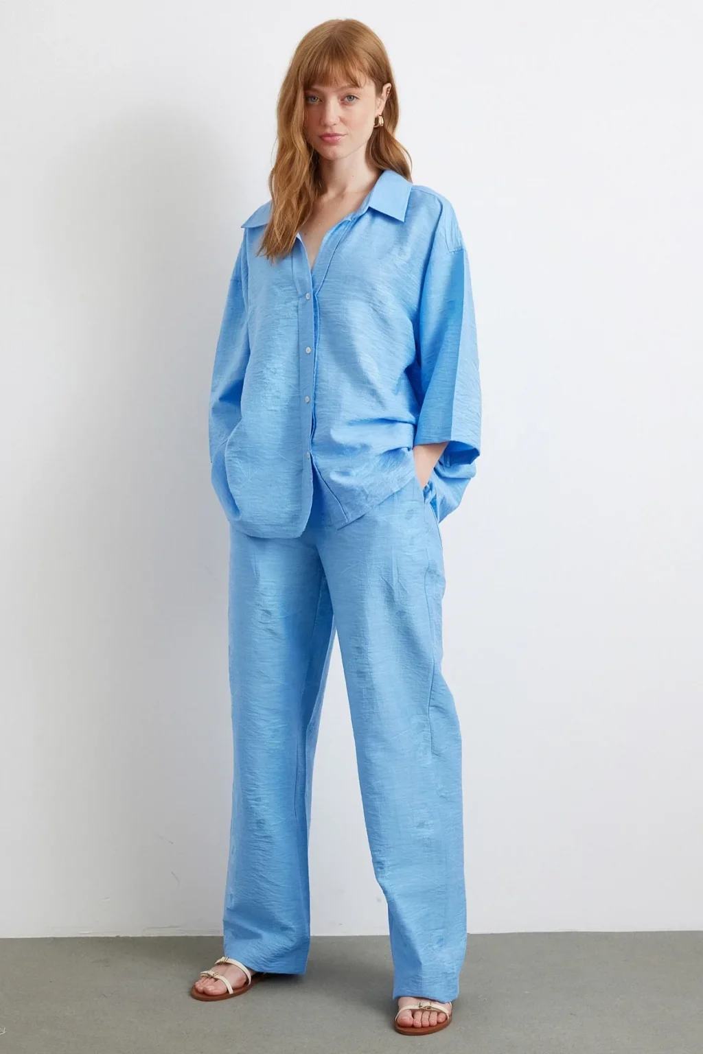 Arka Cepli Salaş Pantolon Mavi