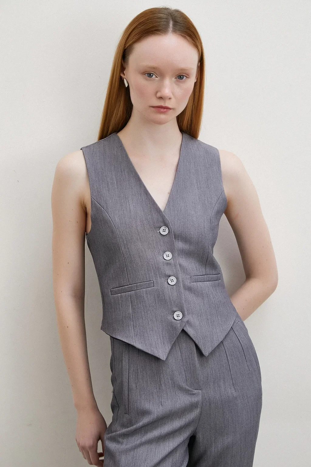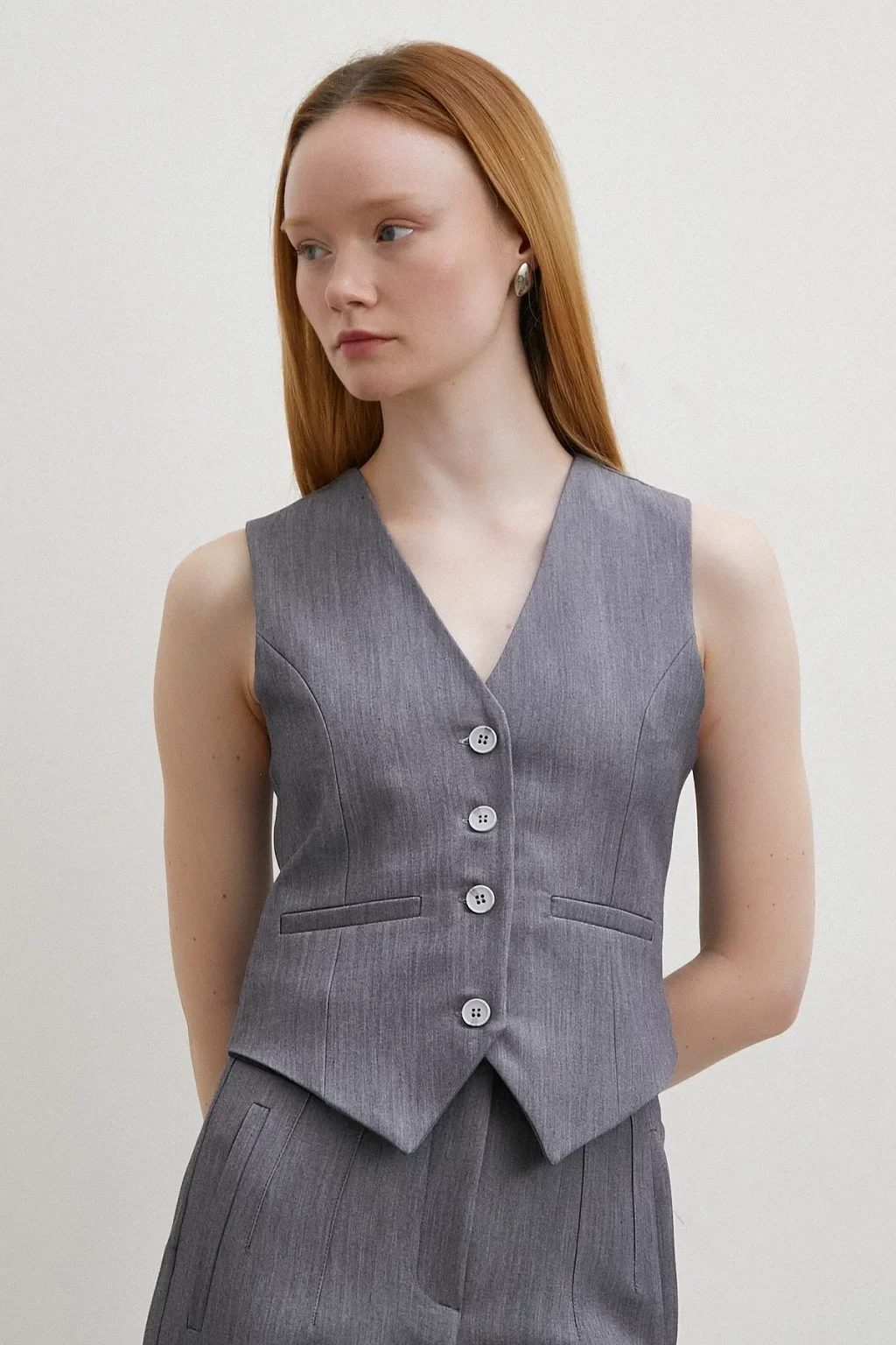 Kemerli Bisiklet Yaka Üç Düğmeli Yelek Siyah