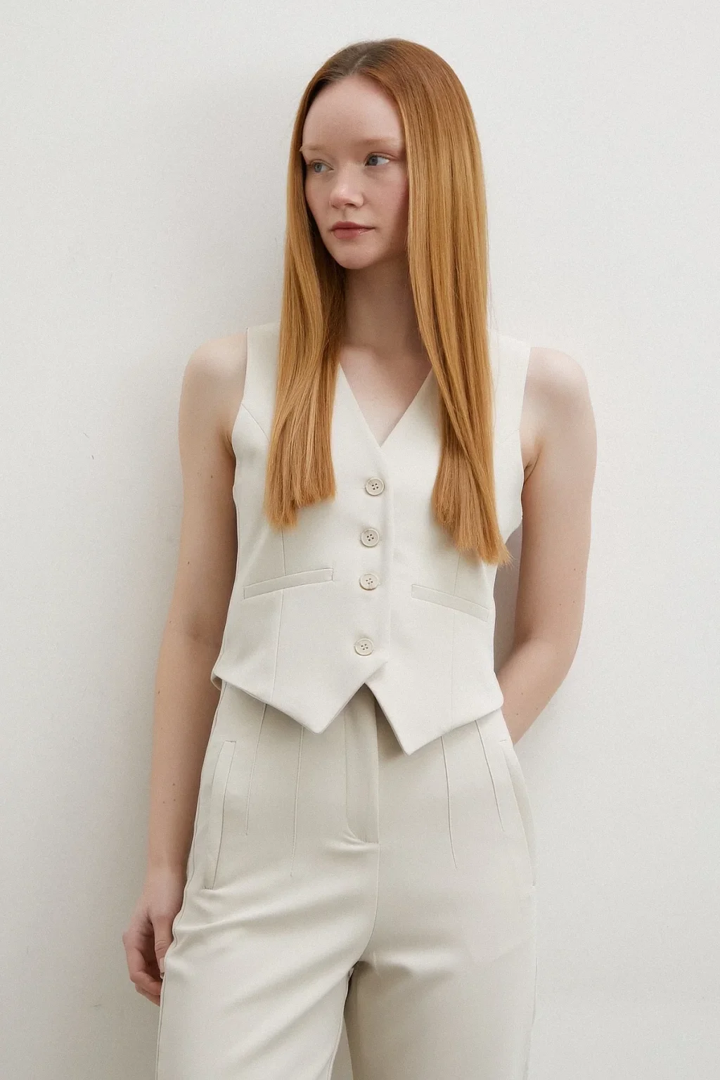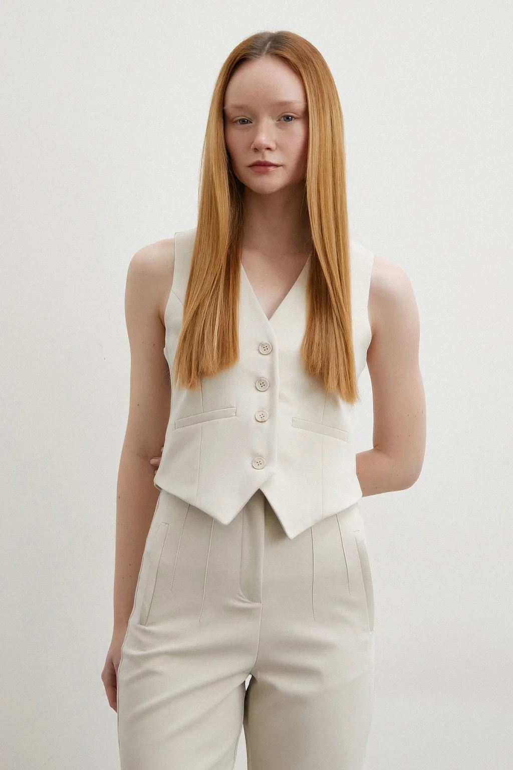 Astarlı Kuplu Yelek Ekru