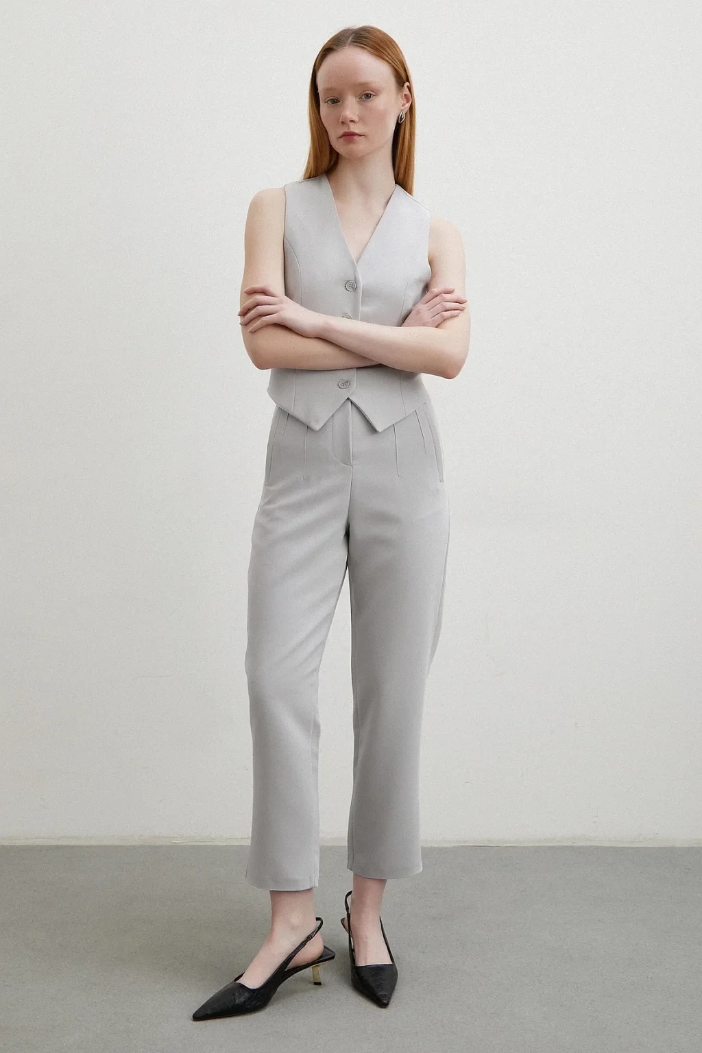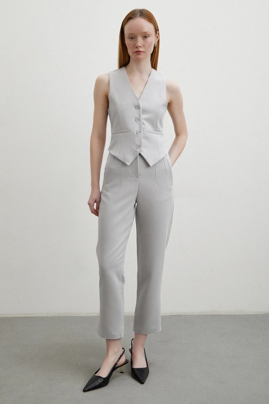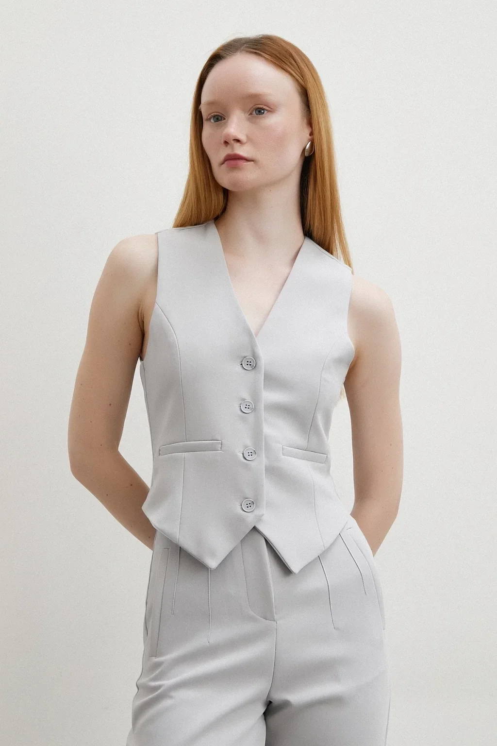 Astarlı Kuplu Yelek Gri