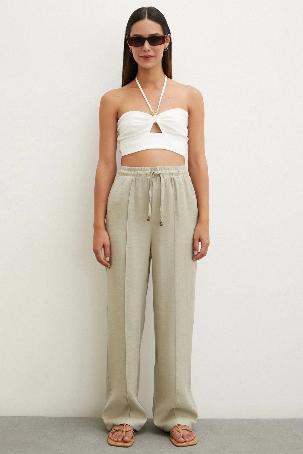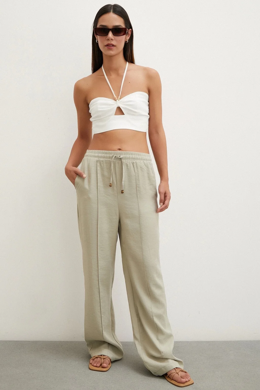 Belden Bağlamalı Pantolon Bej