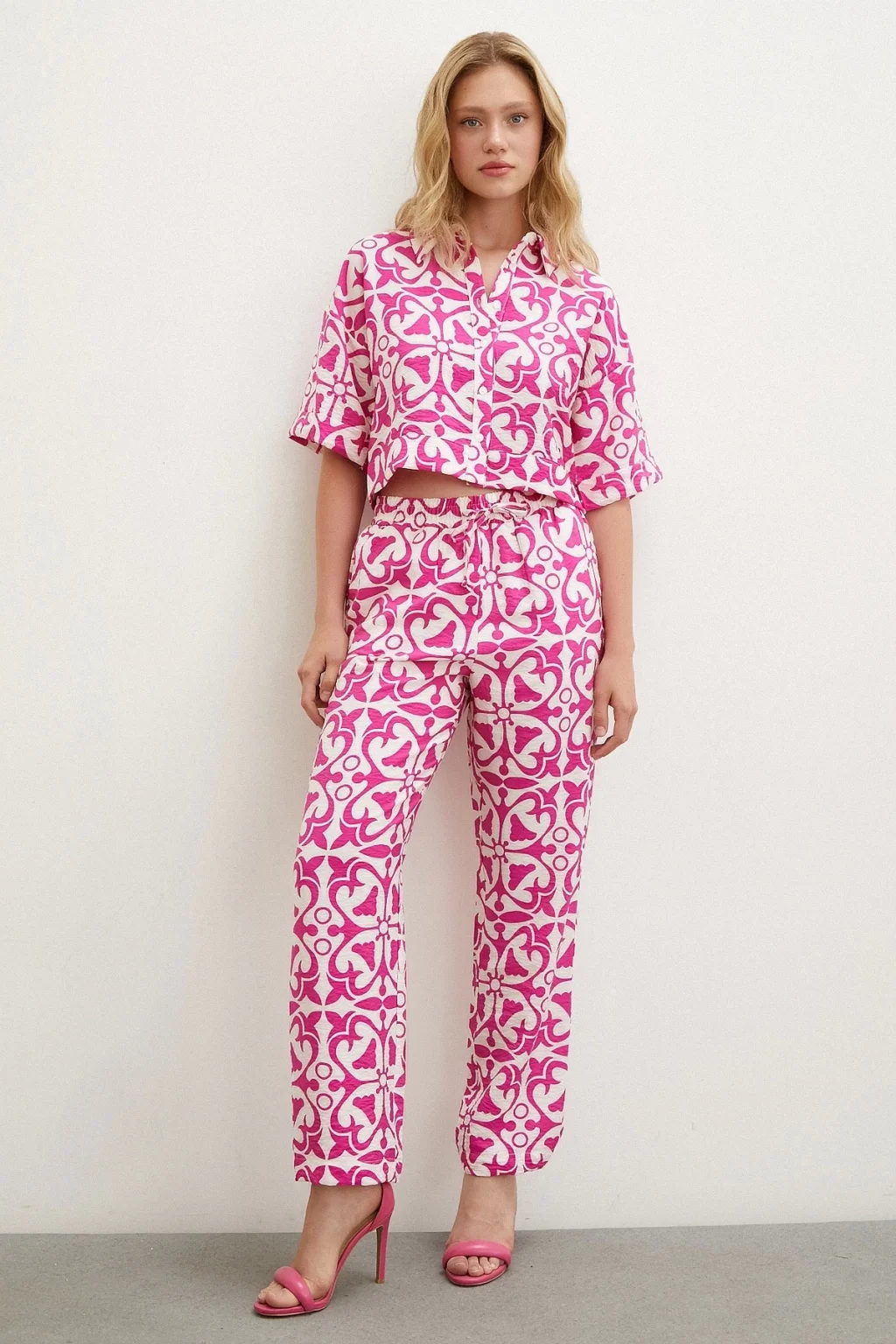 Beli Lastikli Boru Paça Pantolon Fuşya