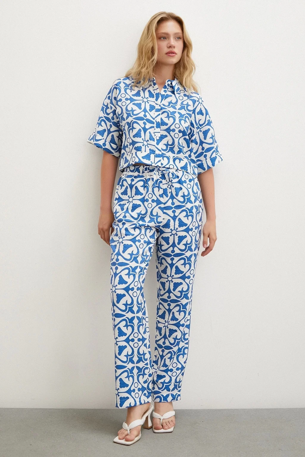 Boru Paça Yüksek Bel Keten Pantolon Camel