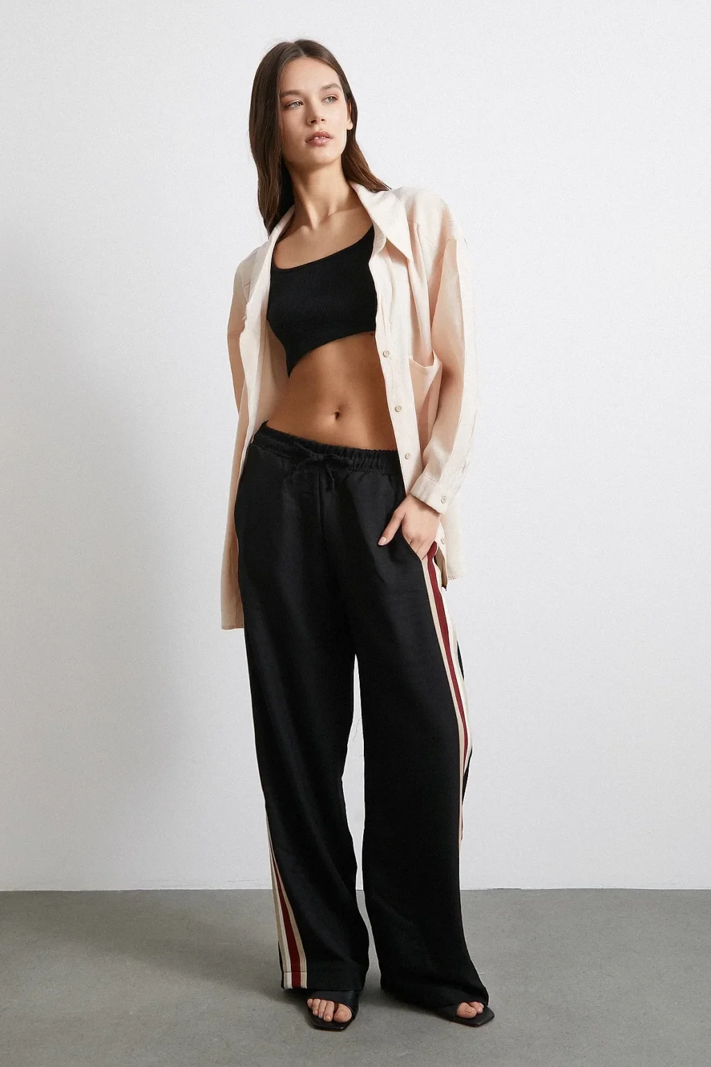Beli Lastikli Çift Şeritli Pantolon Siyah