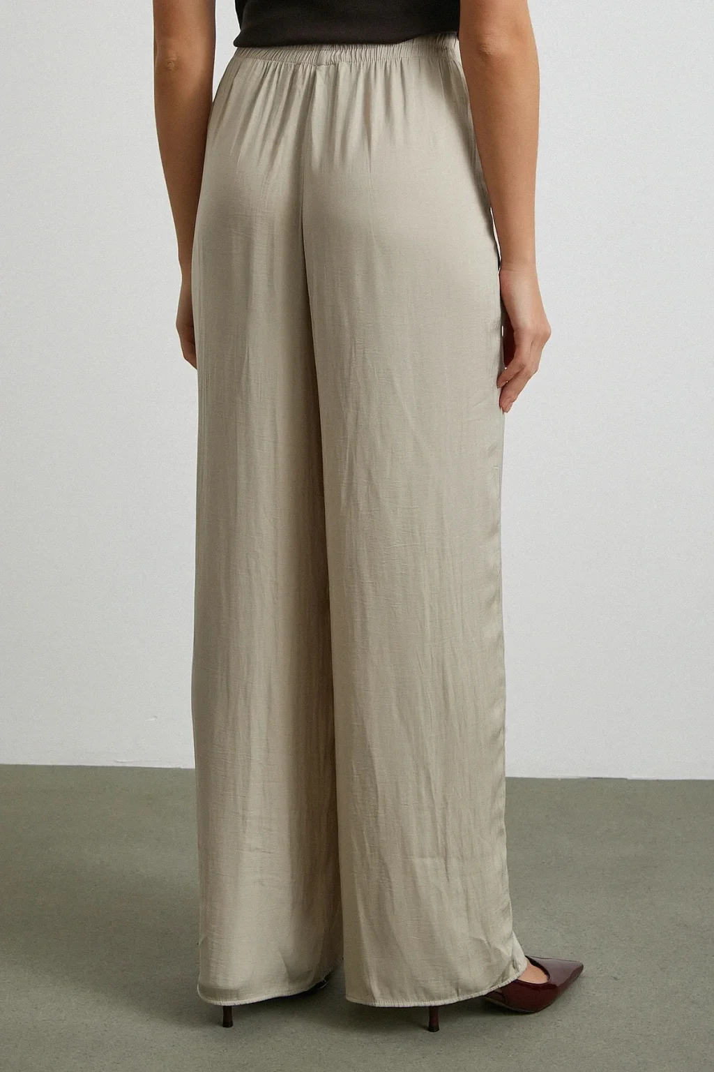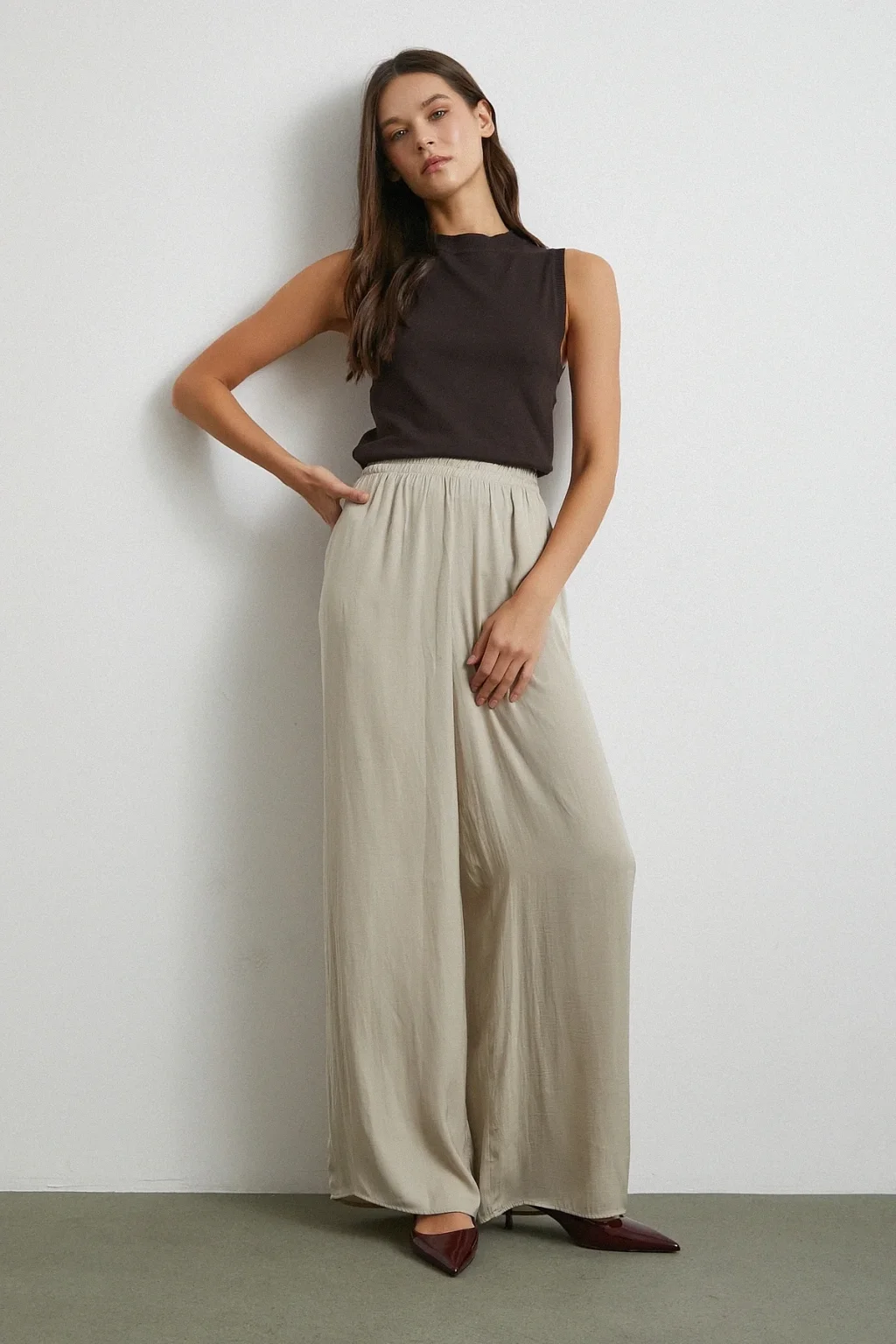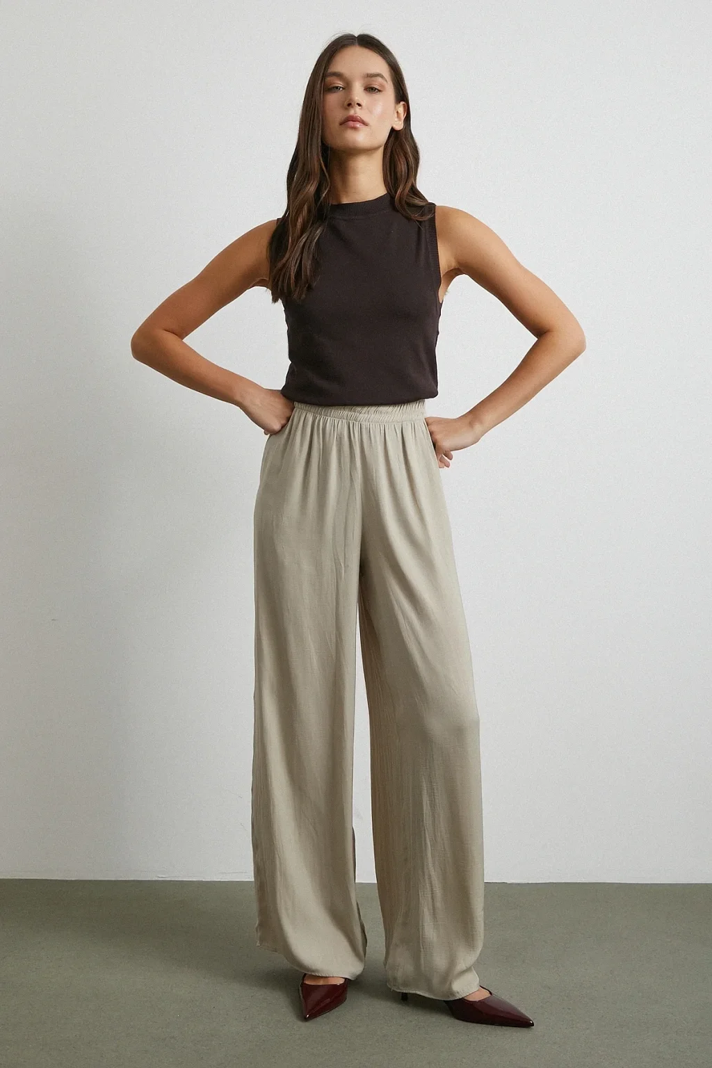 Beli Lastikli Dökümlü Geniş Paça Pantolon Taş