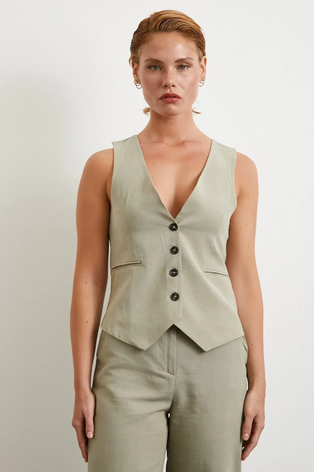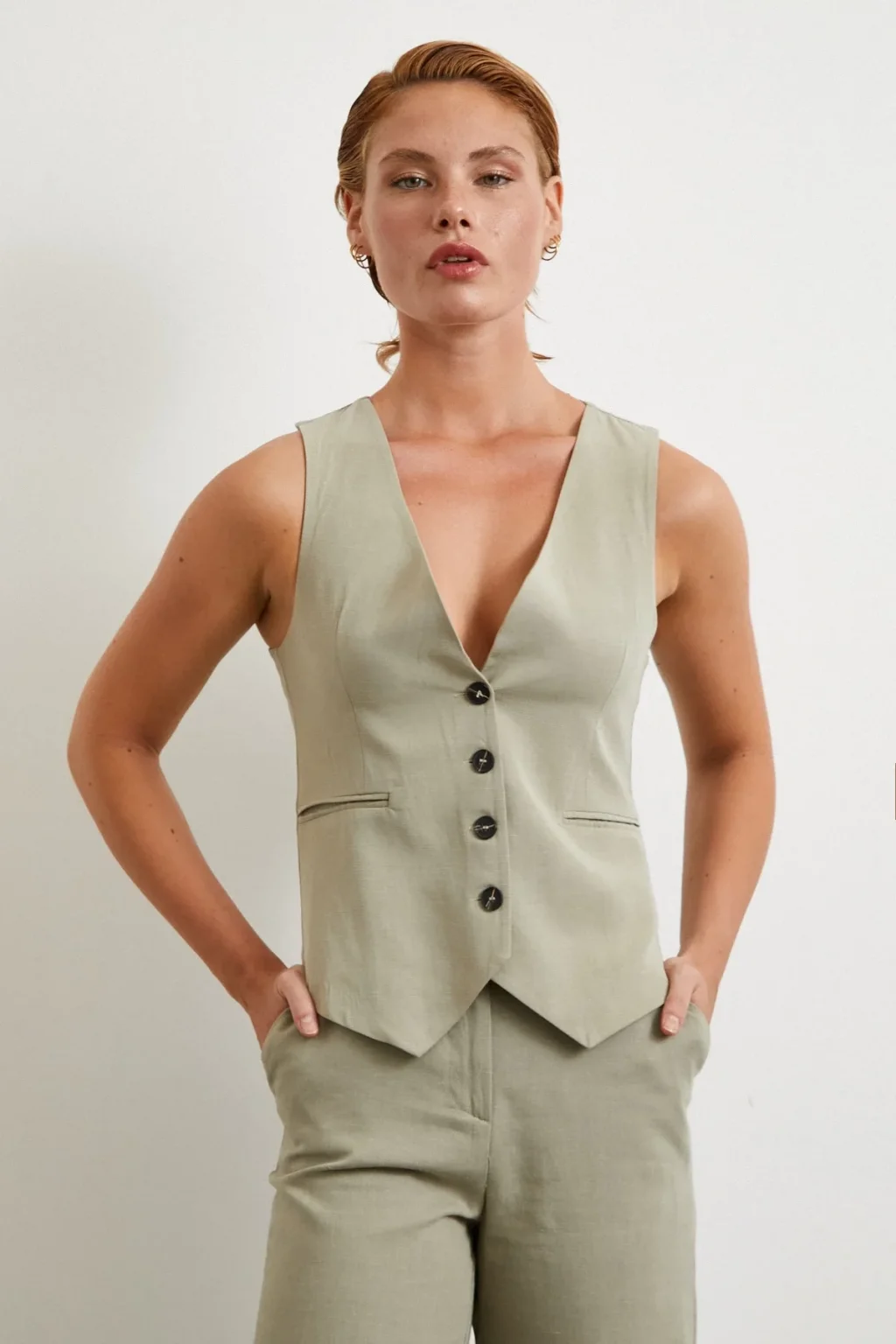 Düğmeli Yelek Fıstık Yeşili