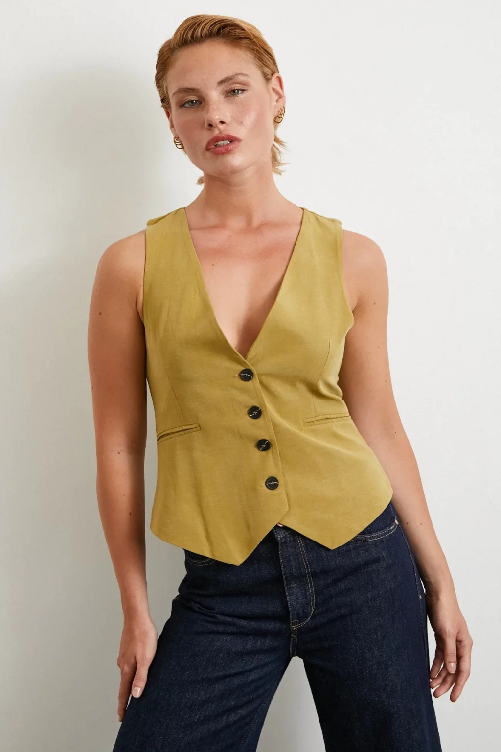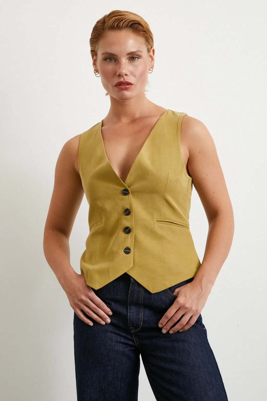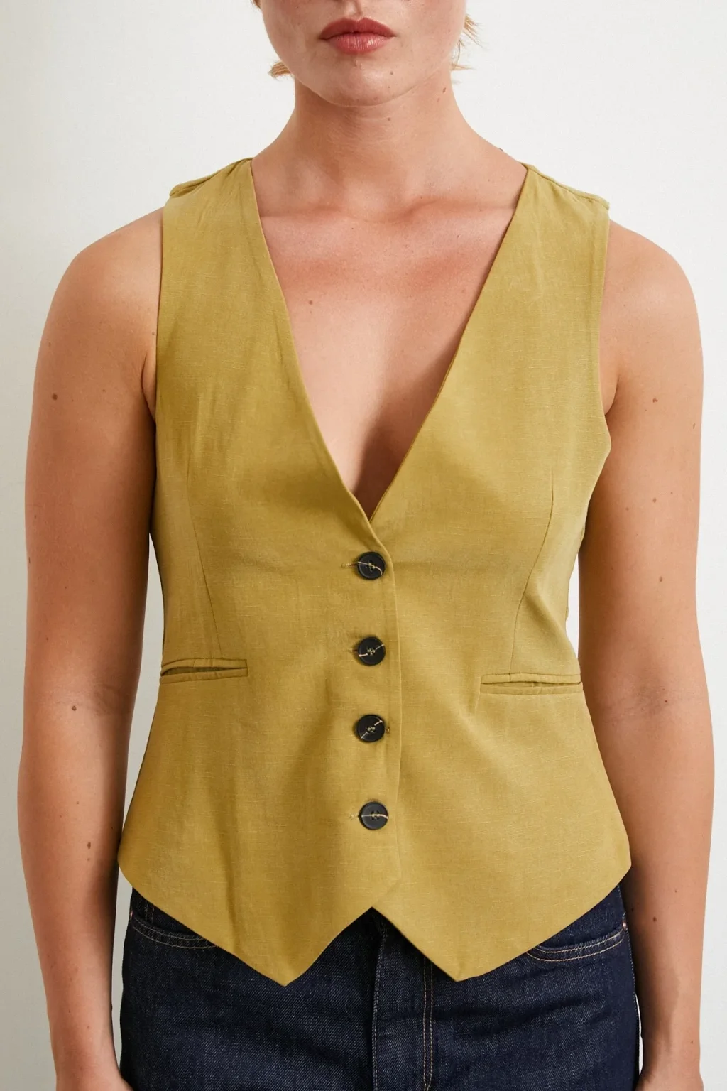 Düğmeli Yelek Fıstık Yeşili