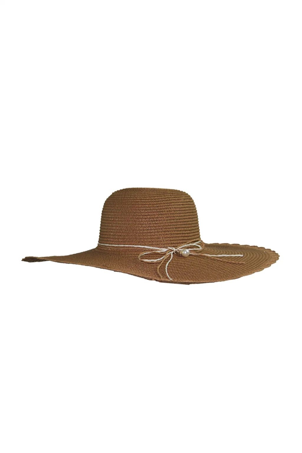 Geniş Kenarlı İncili Hasır Kadın Şapka 3871