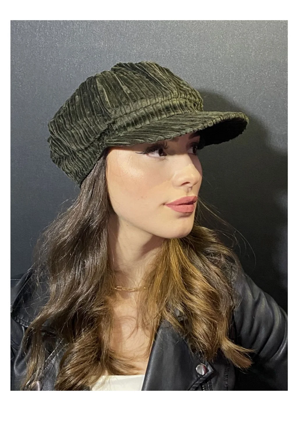 Kadın Denizci Tipi Kadife Şapka 1243 Yeşil