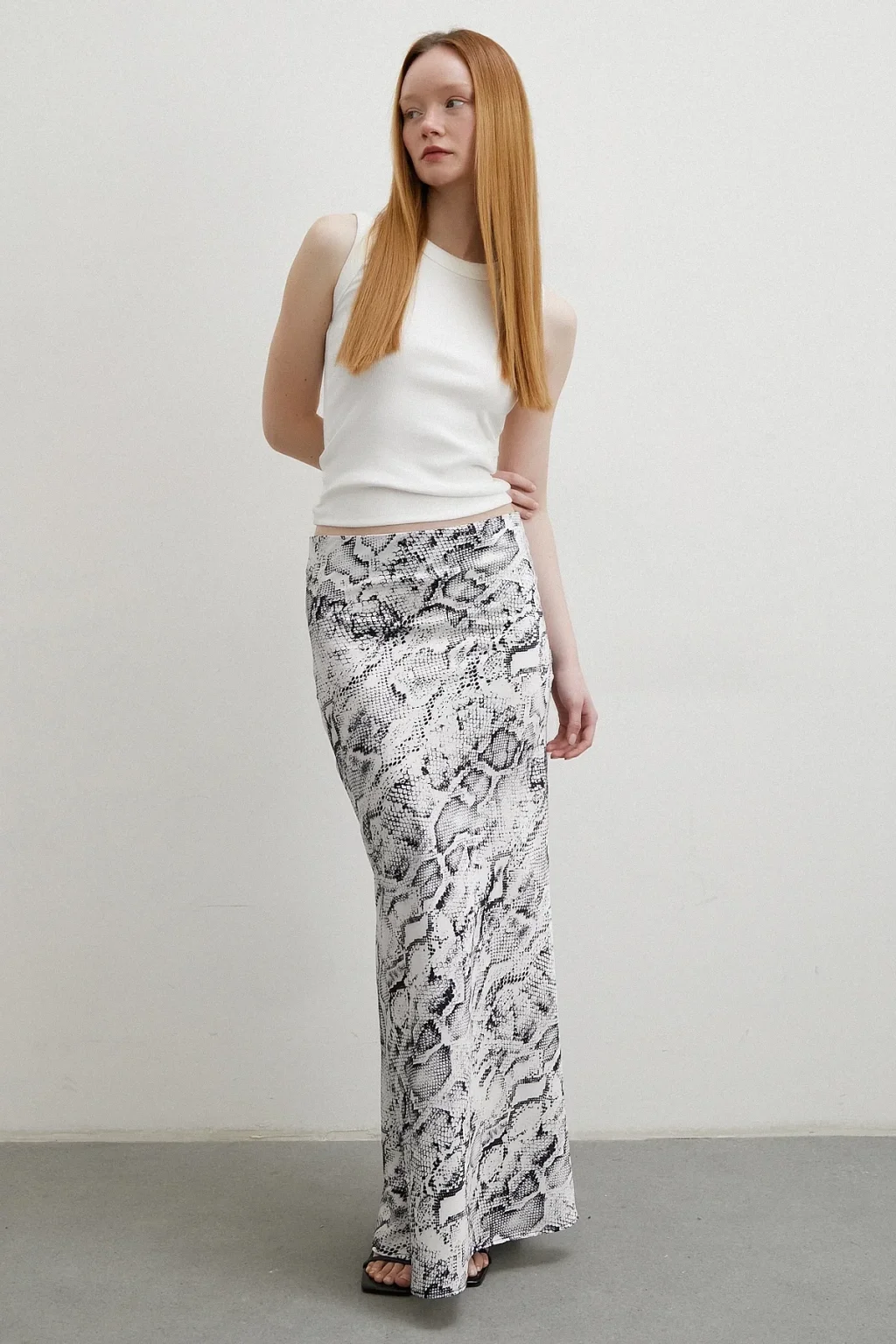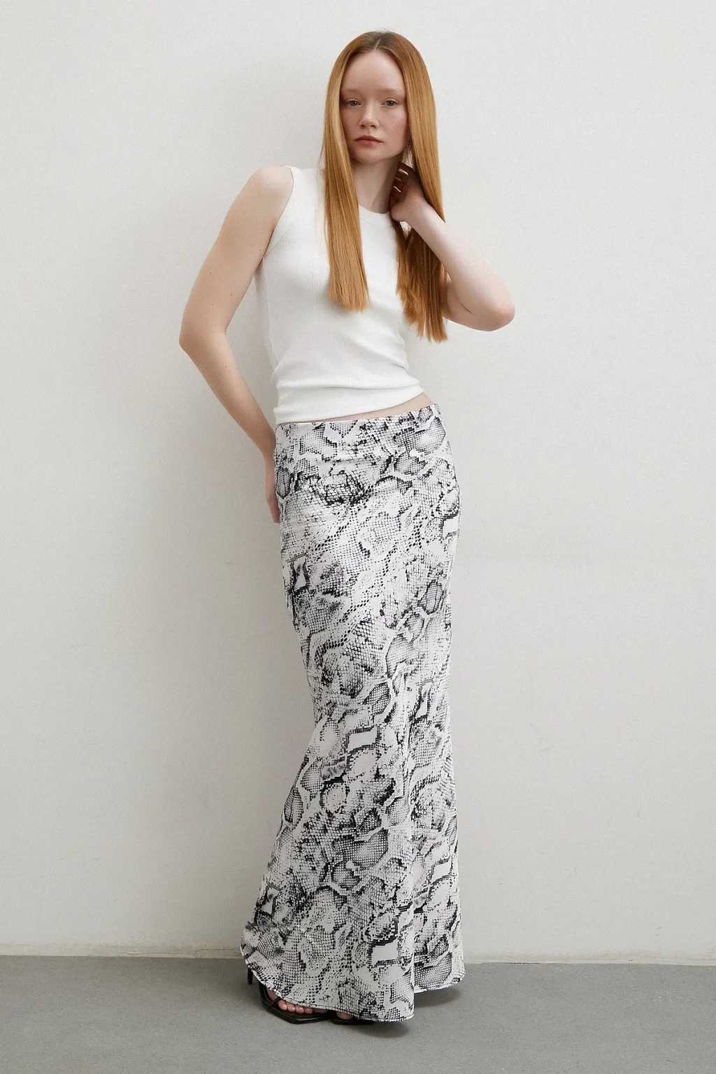 Desenli Maxi Verev Etek Beyaz