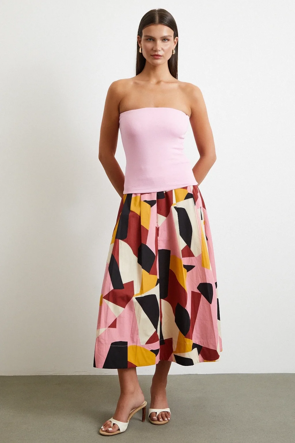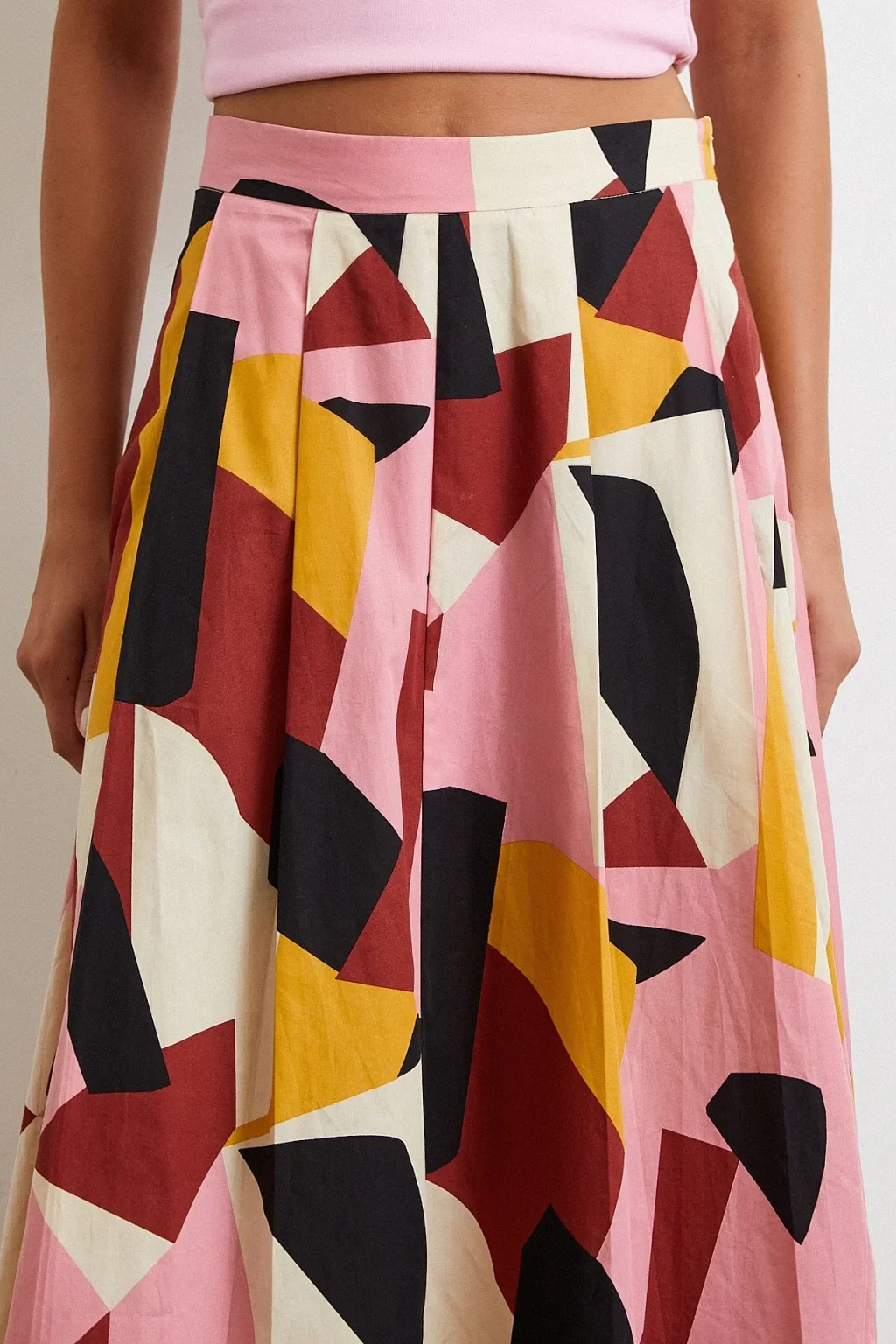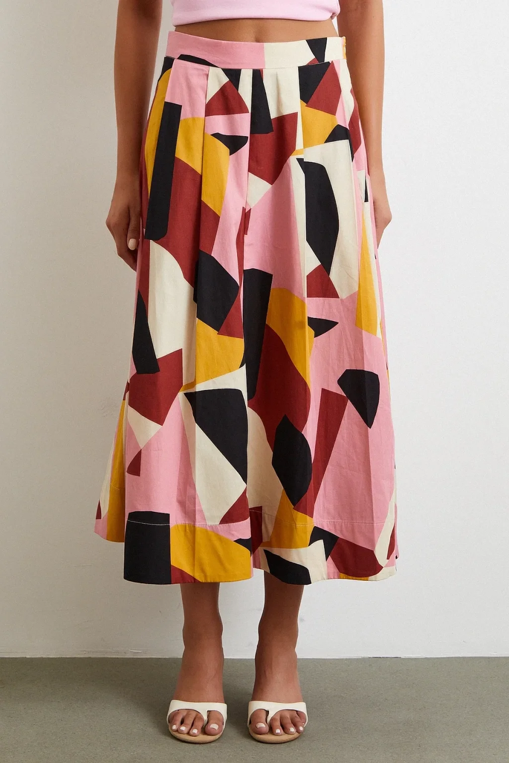 Desenli Midi Etek Pembe