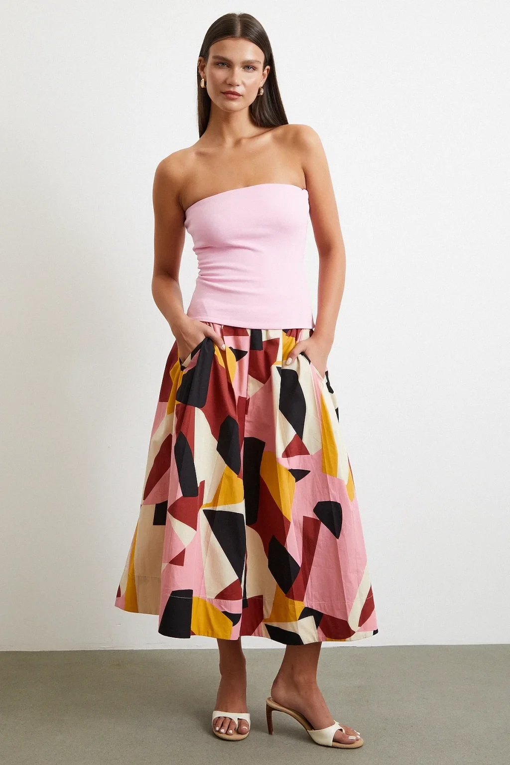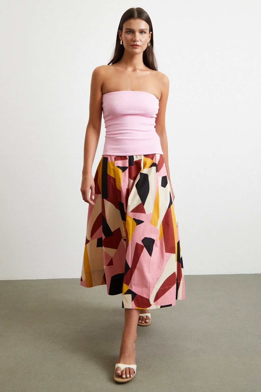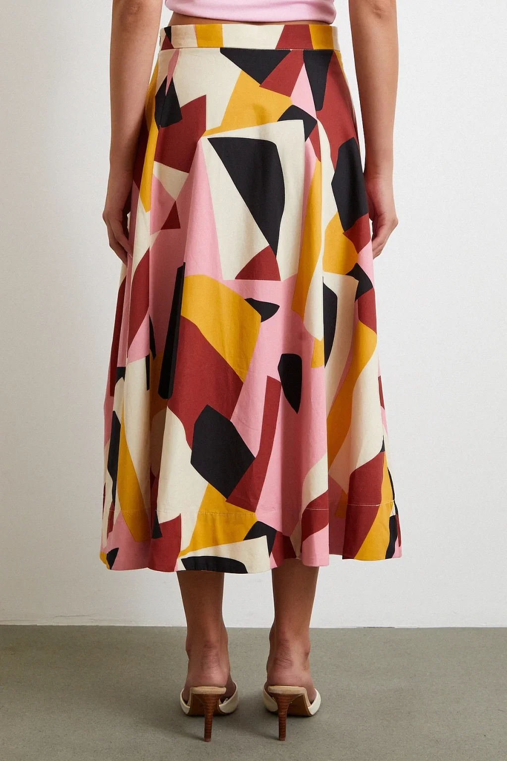 Desenli Midi Etek Pembe