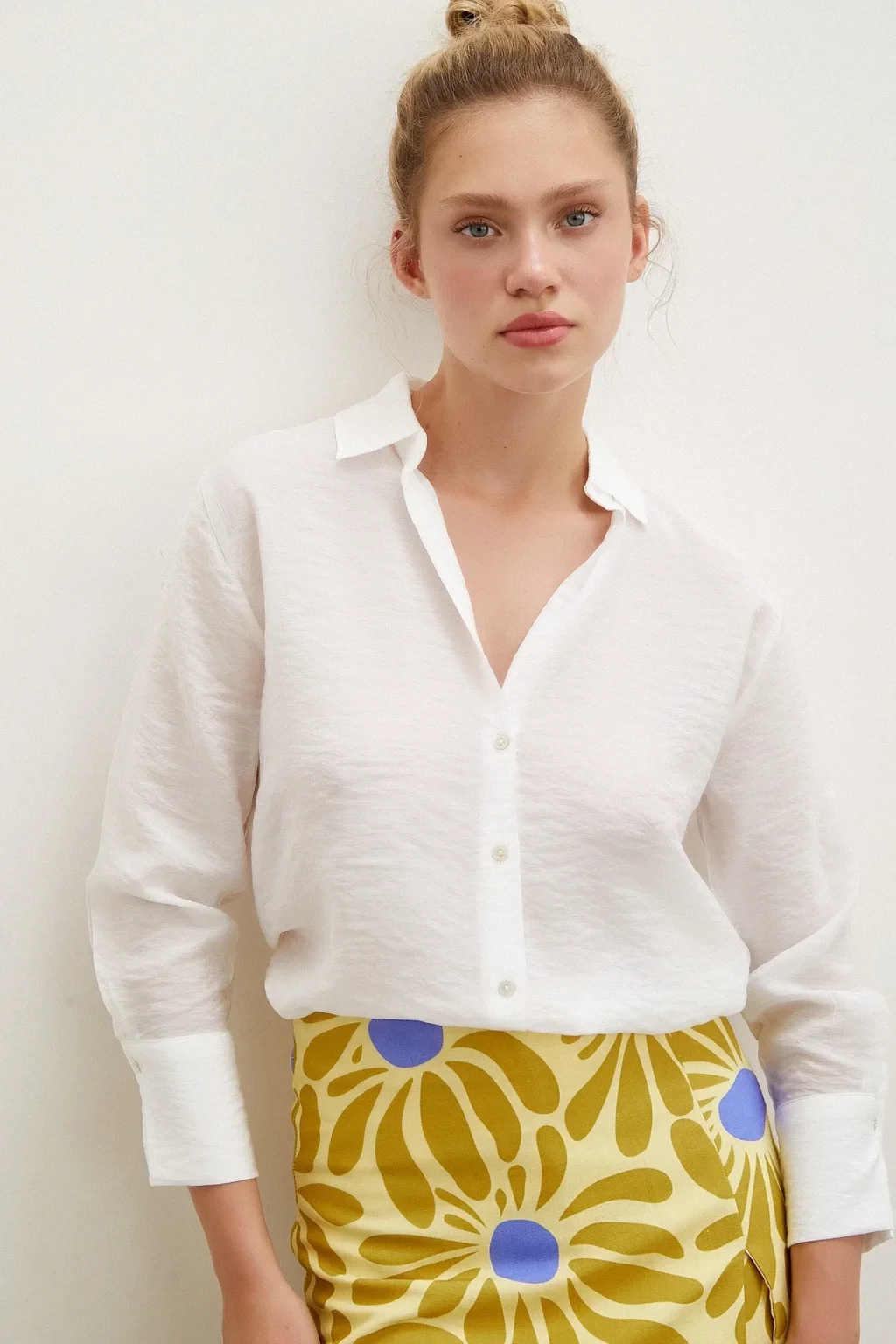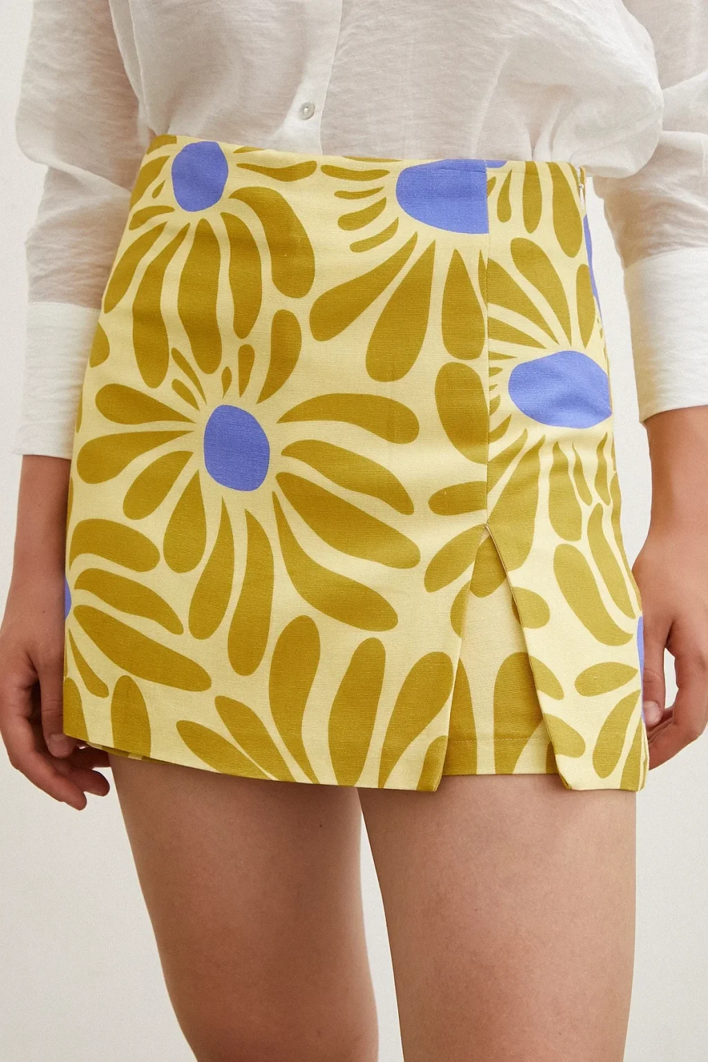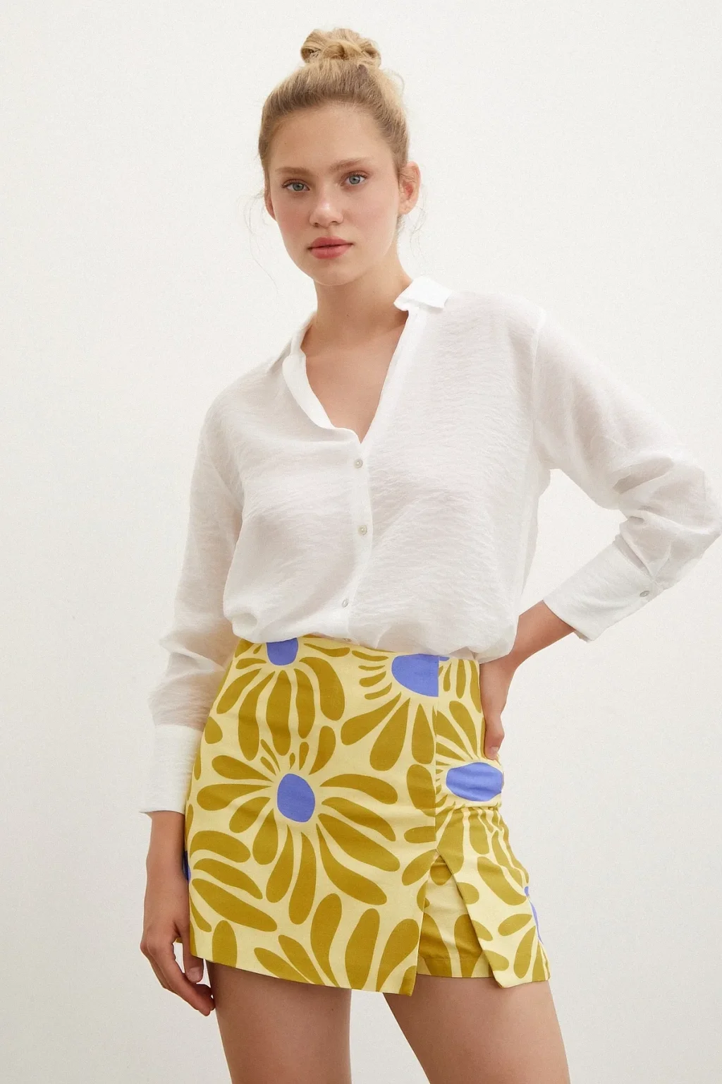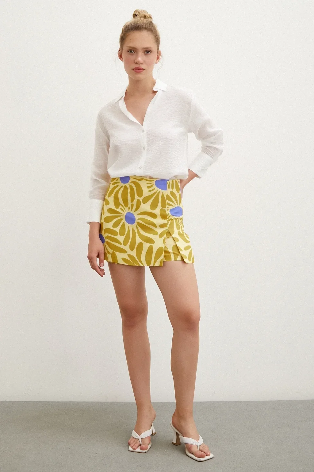 Önü Bağlamalı Yırtmaçlı Etek Ekru