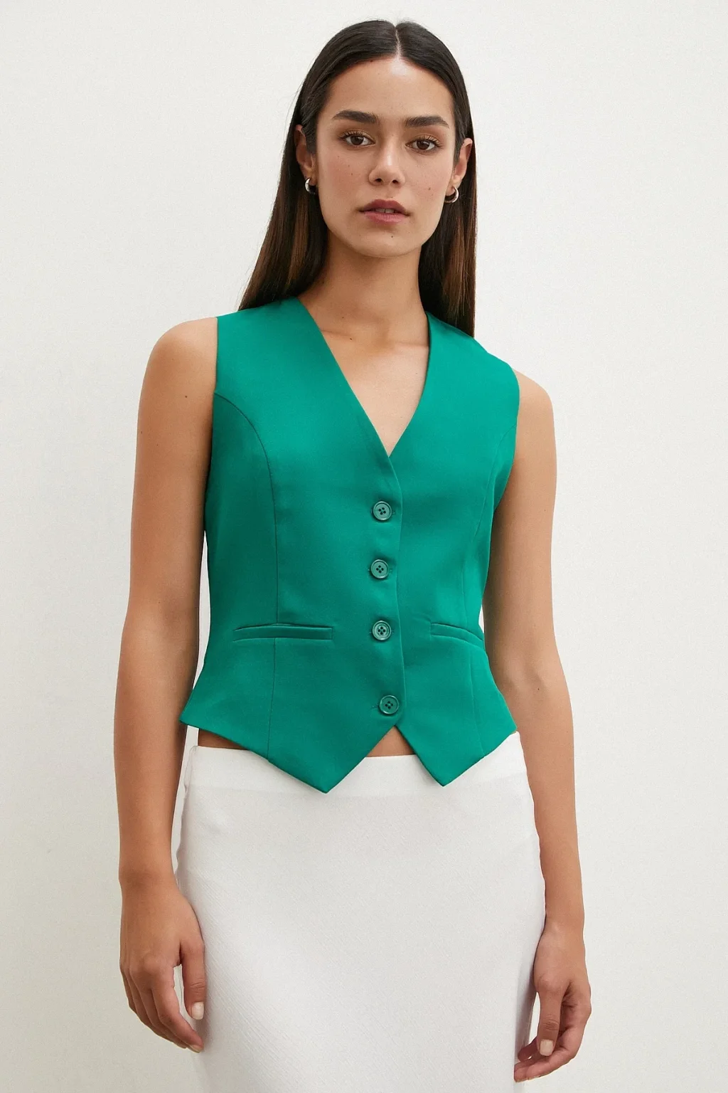 Düğmeli Yelek Fıstık Yeşili
