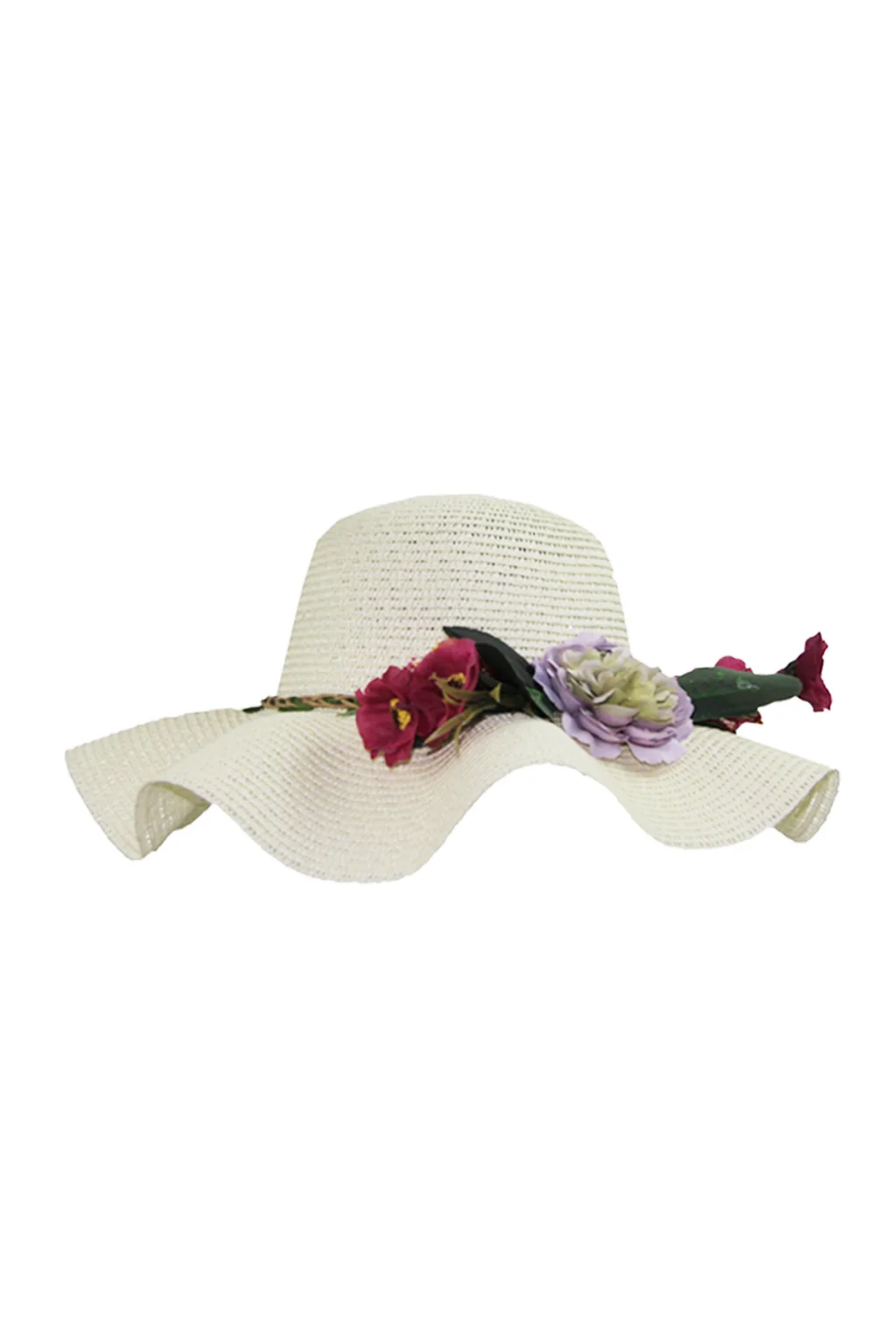 Kadın Çiçekli Hasır Şapka 3870 Beyaz