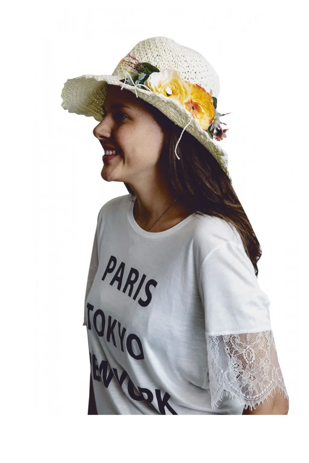 Çiçek Desenli Kadın Bermuda Şapka 1454
