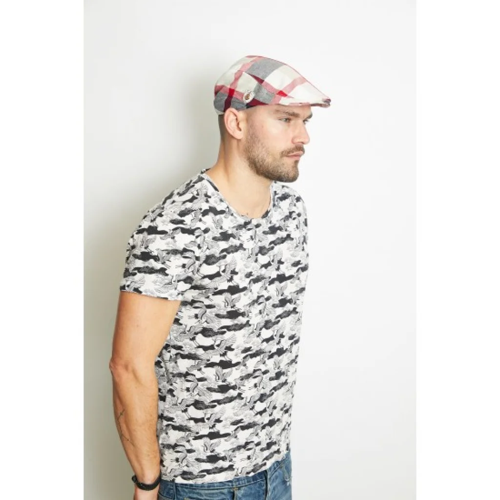 Yazlık Erkek Ekose Kırmızı Kasket 1033