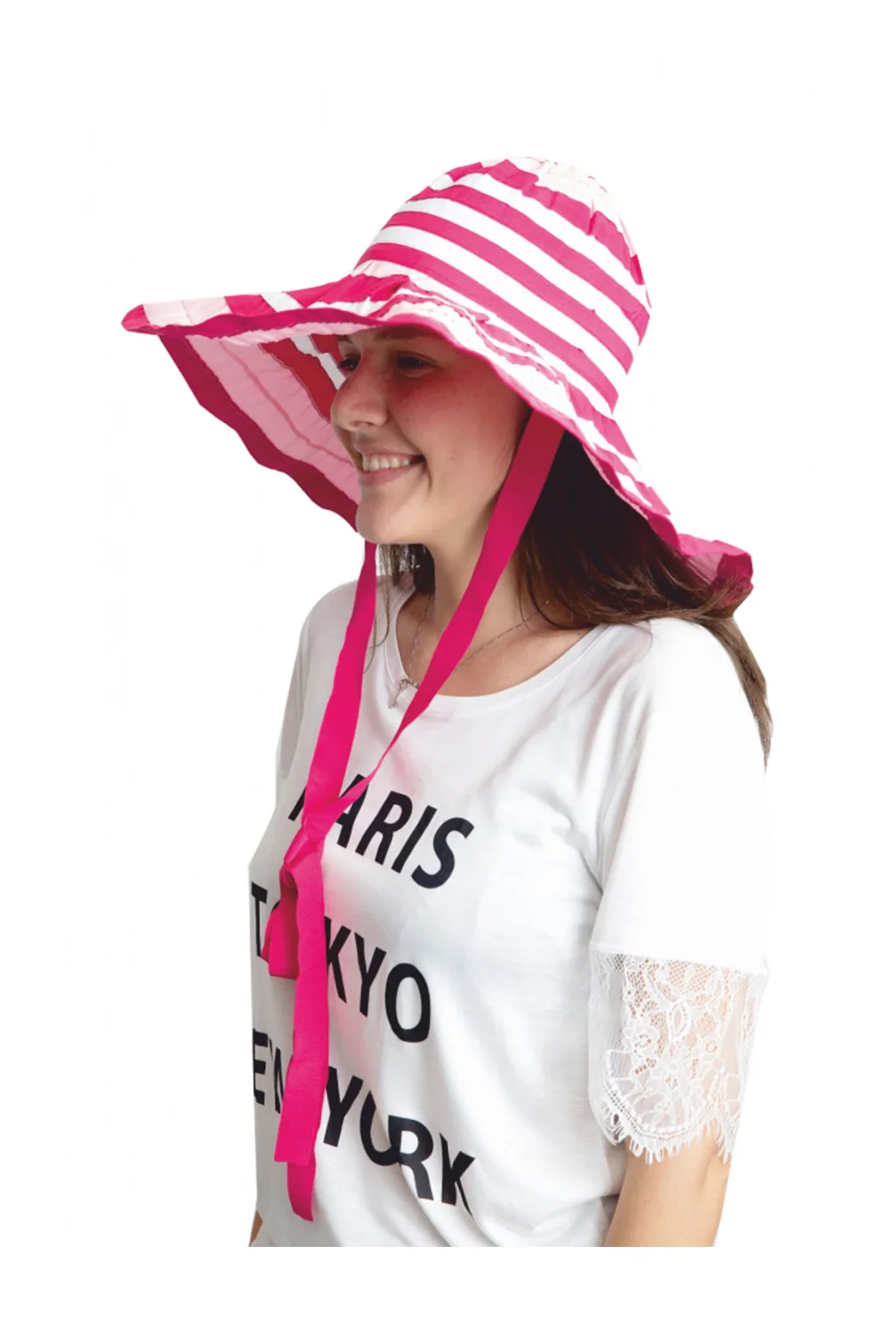 Bay Şapkacı - Yazlık Kadın Geniş Kenarlı Şeritli Şapka; ; ; ;
