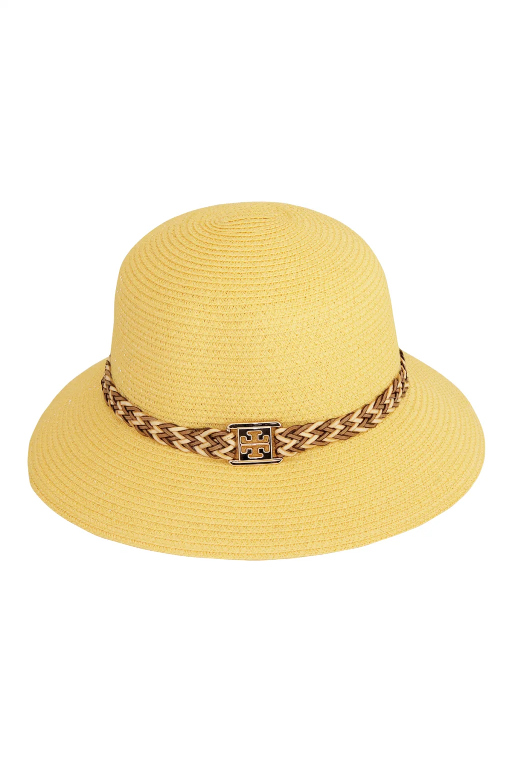 Yazlık Kadın Kemerli Hasır Şapka 6229 Sarı