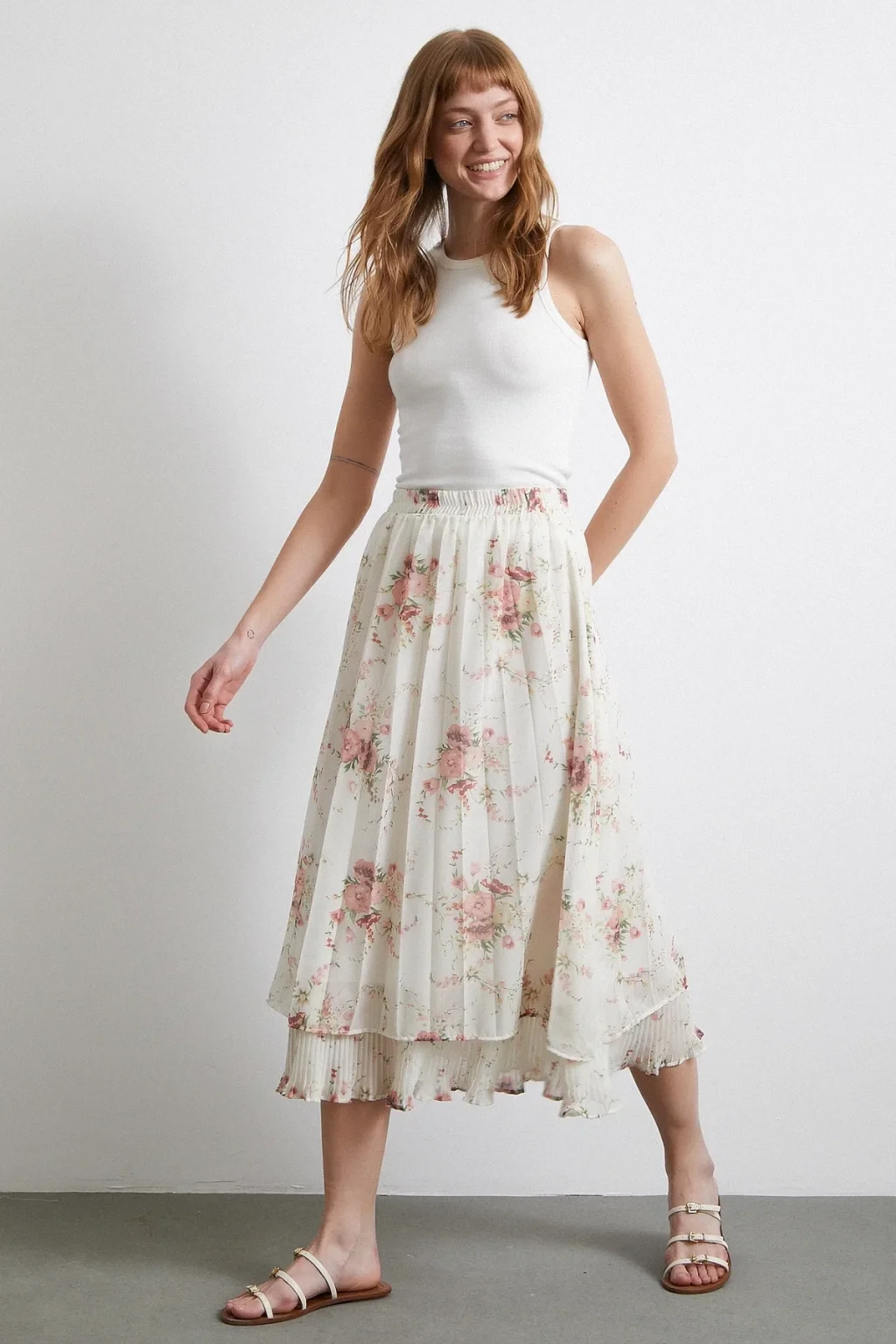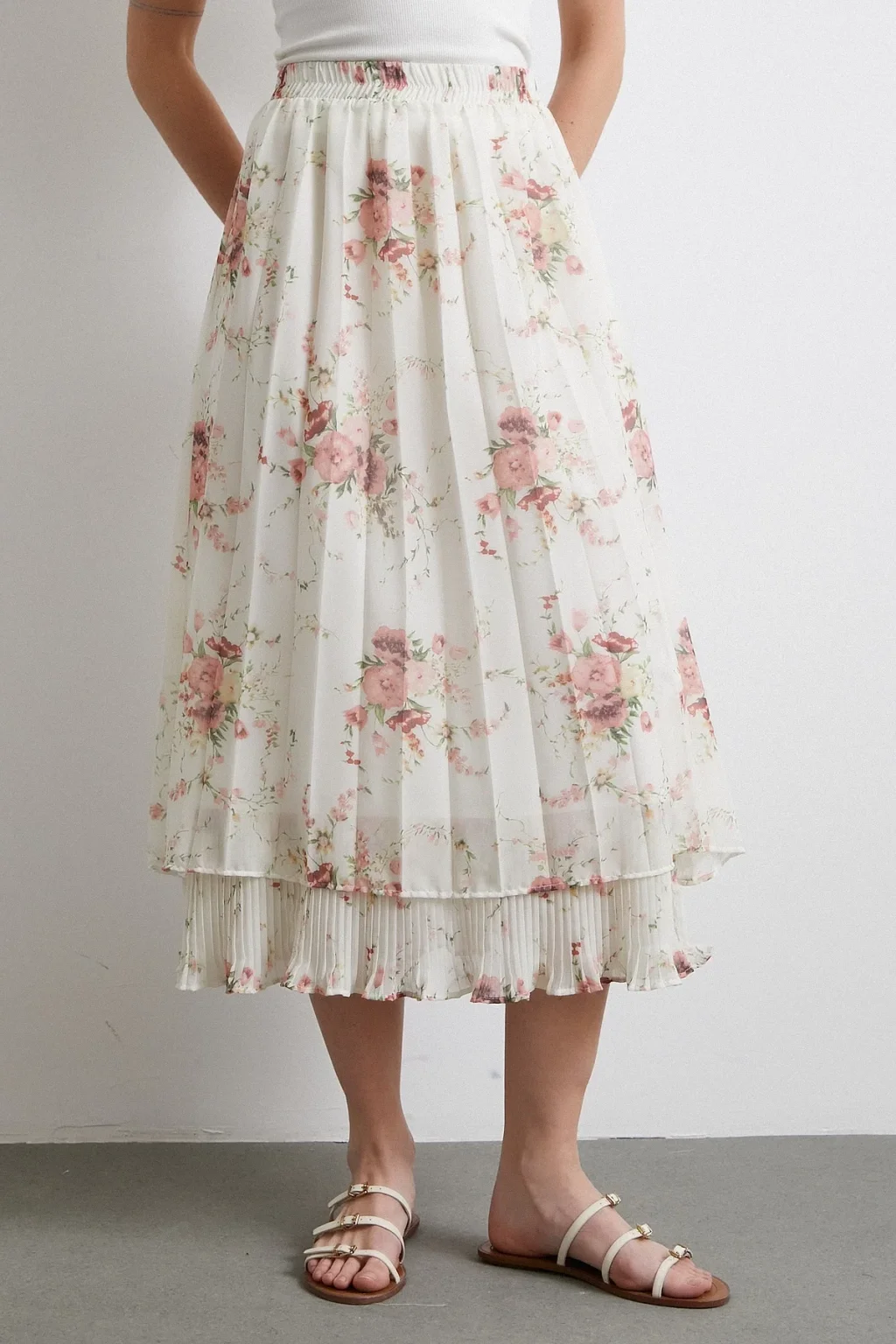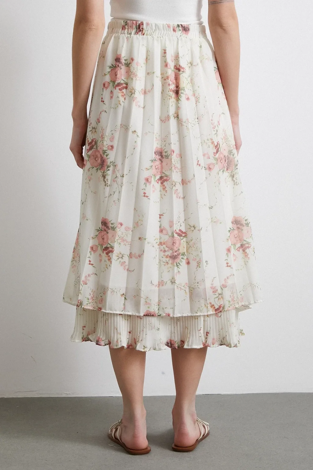 Fırfırlı Piliseli Etek Krem