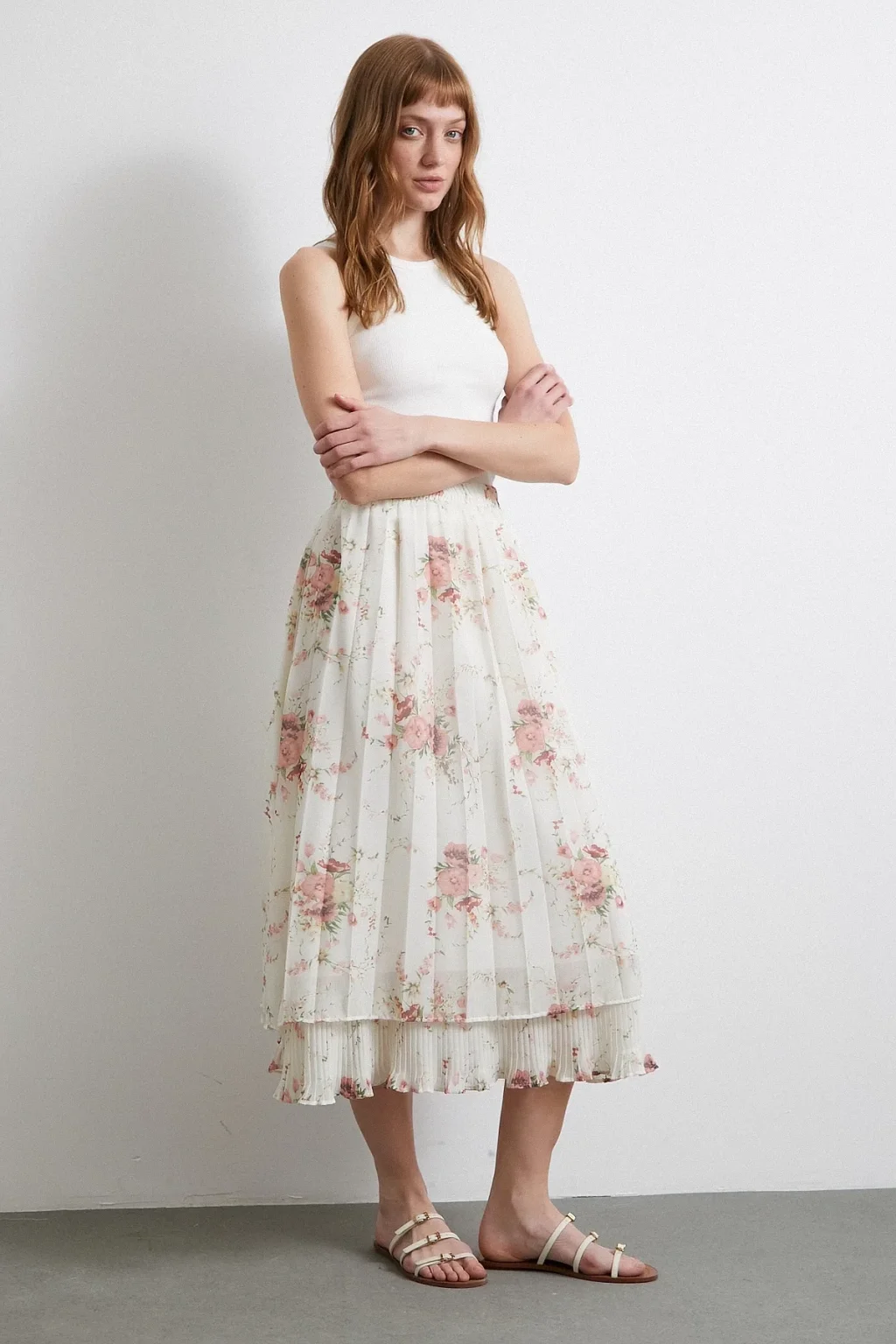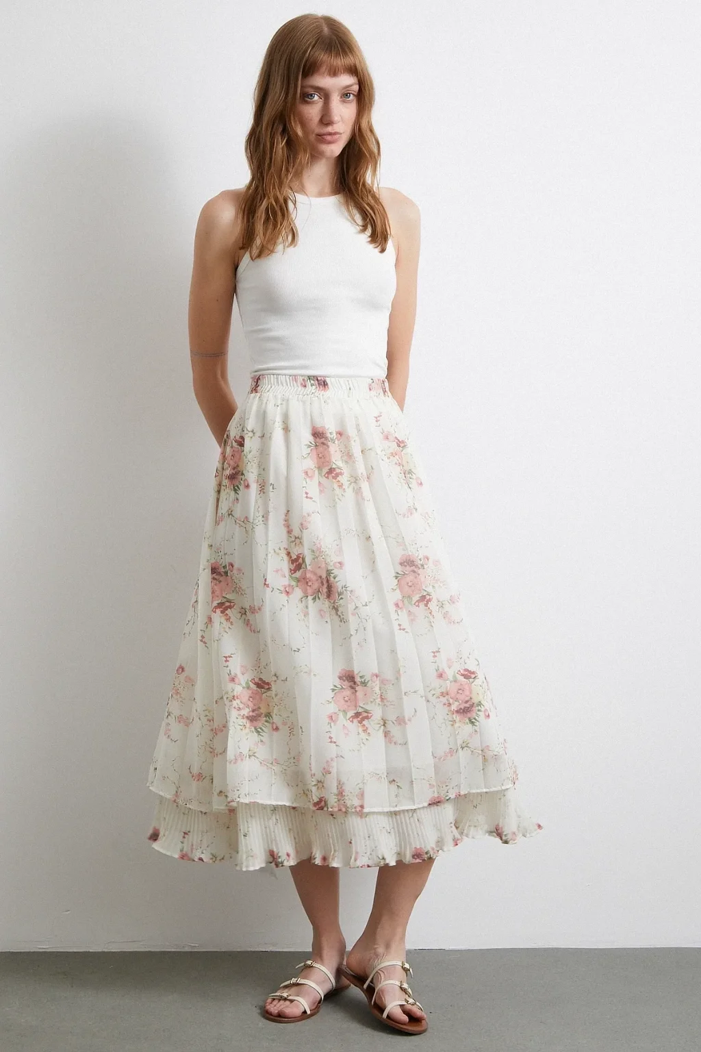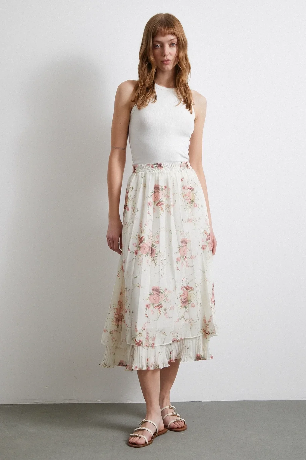 Fırfırlı Piliseli Etek Krem