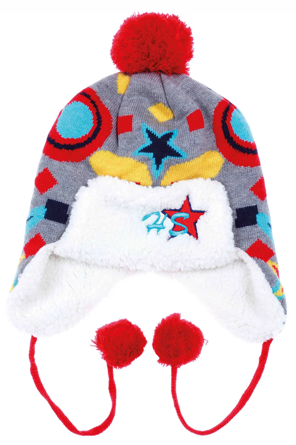 HS Nakışlı Erkek Çocuk Kırmızı Bere Gri 5740