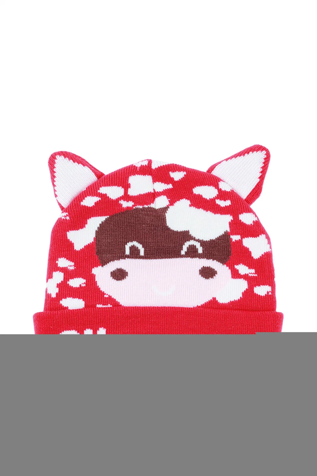 İnek Desenli Kız Bebek Kırmızı Bere;