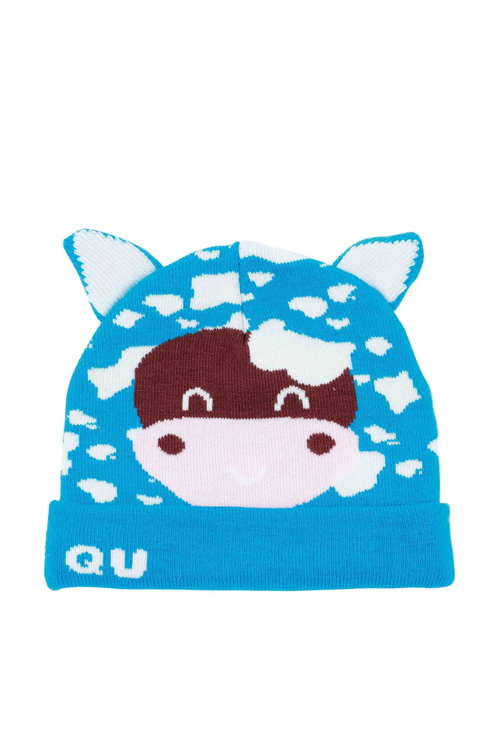 Inek Desenli Kız Bebek Kırmızı Bere 5830-Turkuaz