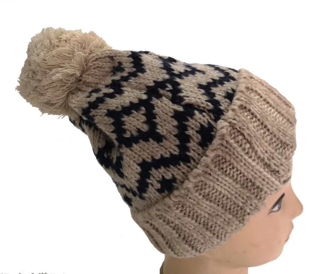 BAY ŞAPKACI - KADIN ÇİFT POMPONLU BEJ BERE 4114