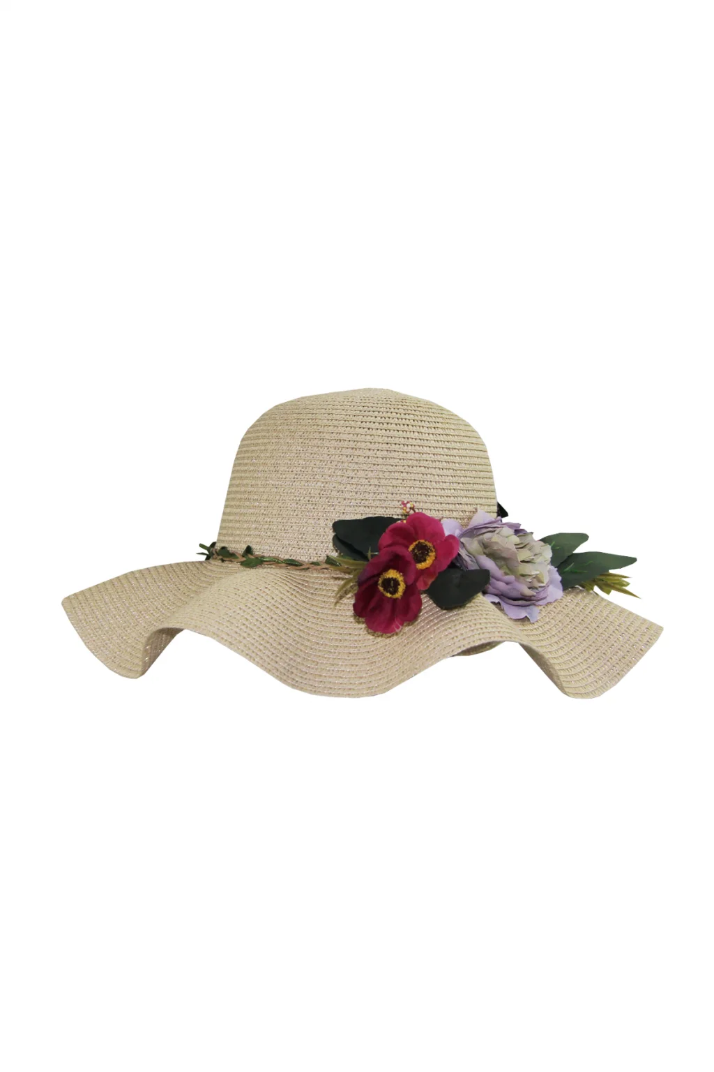 Kadın Çiçekli Hasır Şapka 3870 Krem