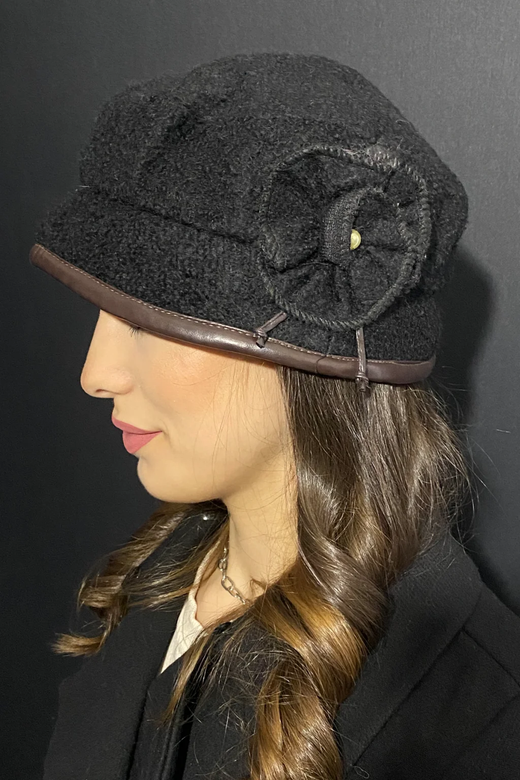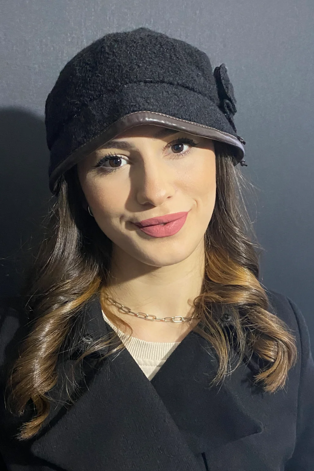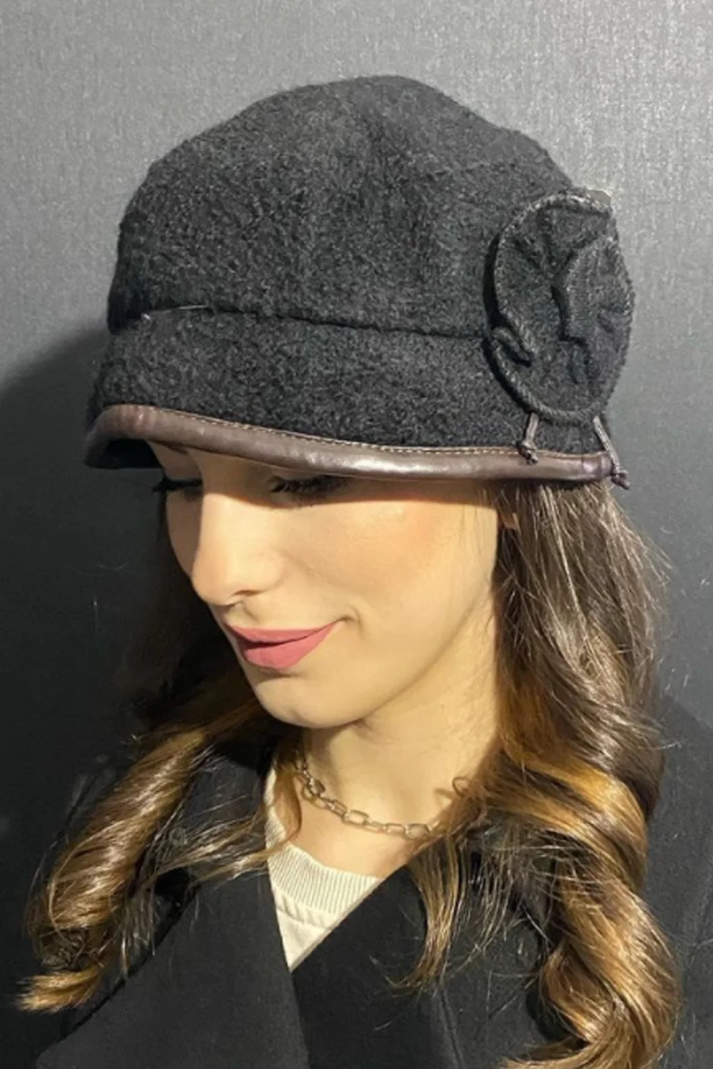Kadın Deri Kenarlı Bermuda Şapka Siyah 7752