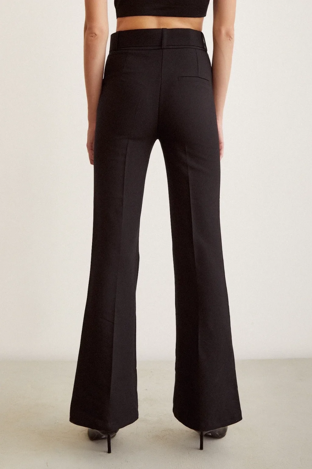 Kemerli İspanyol Paça Pantolon Siyah