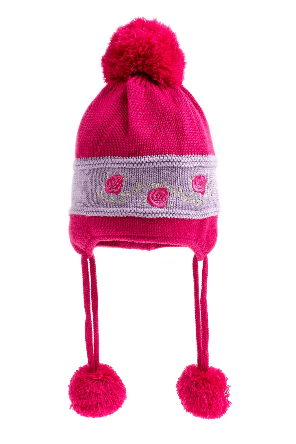 Kız Bebek Çiçek İşlemeli Fuşya Bere 1160