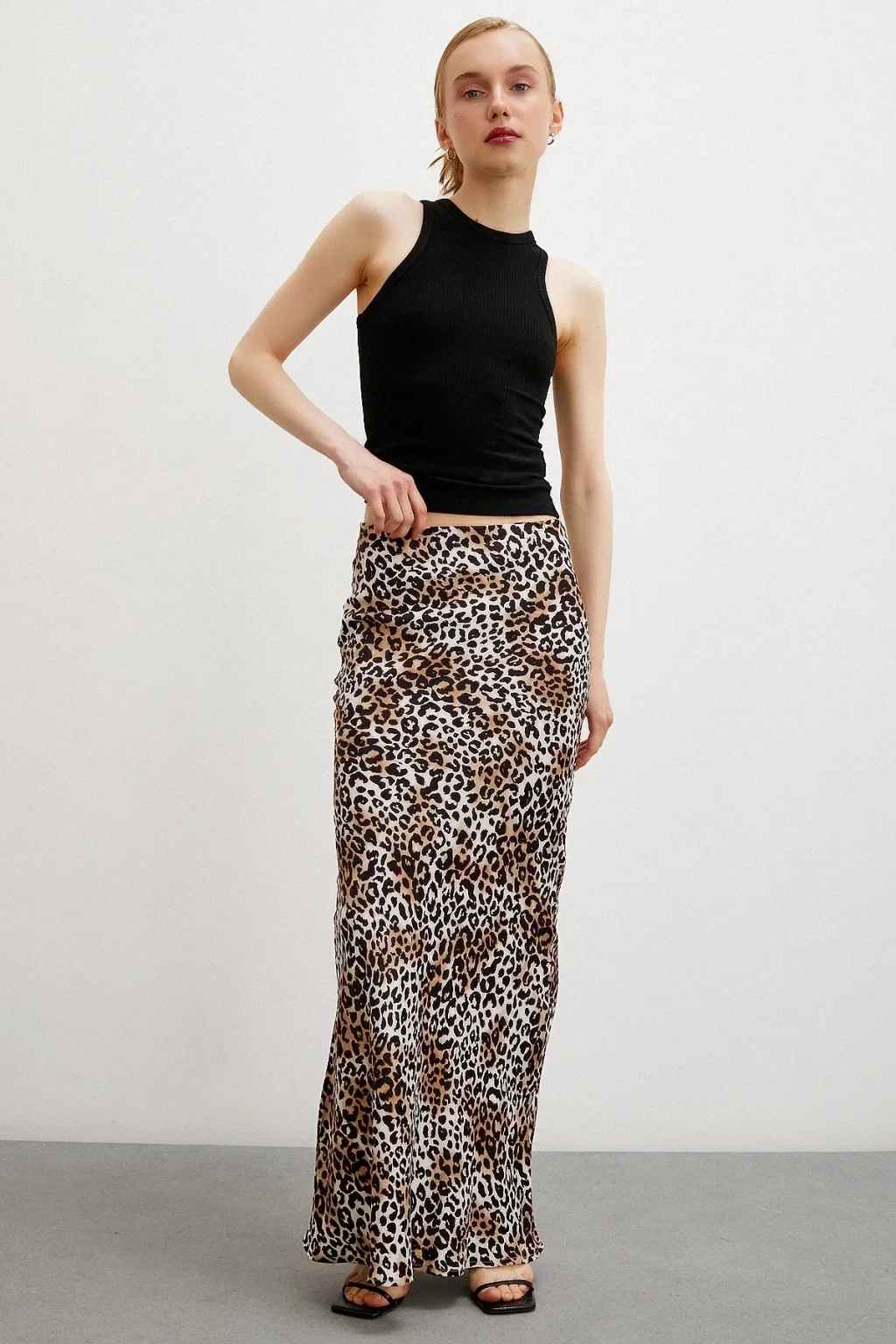 Leopar Desenli Verev Etek Ekru
