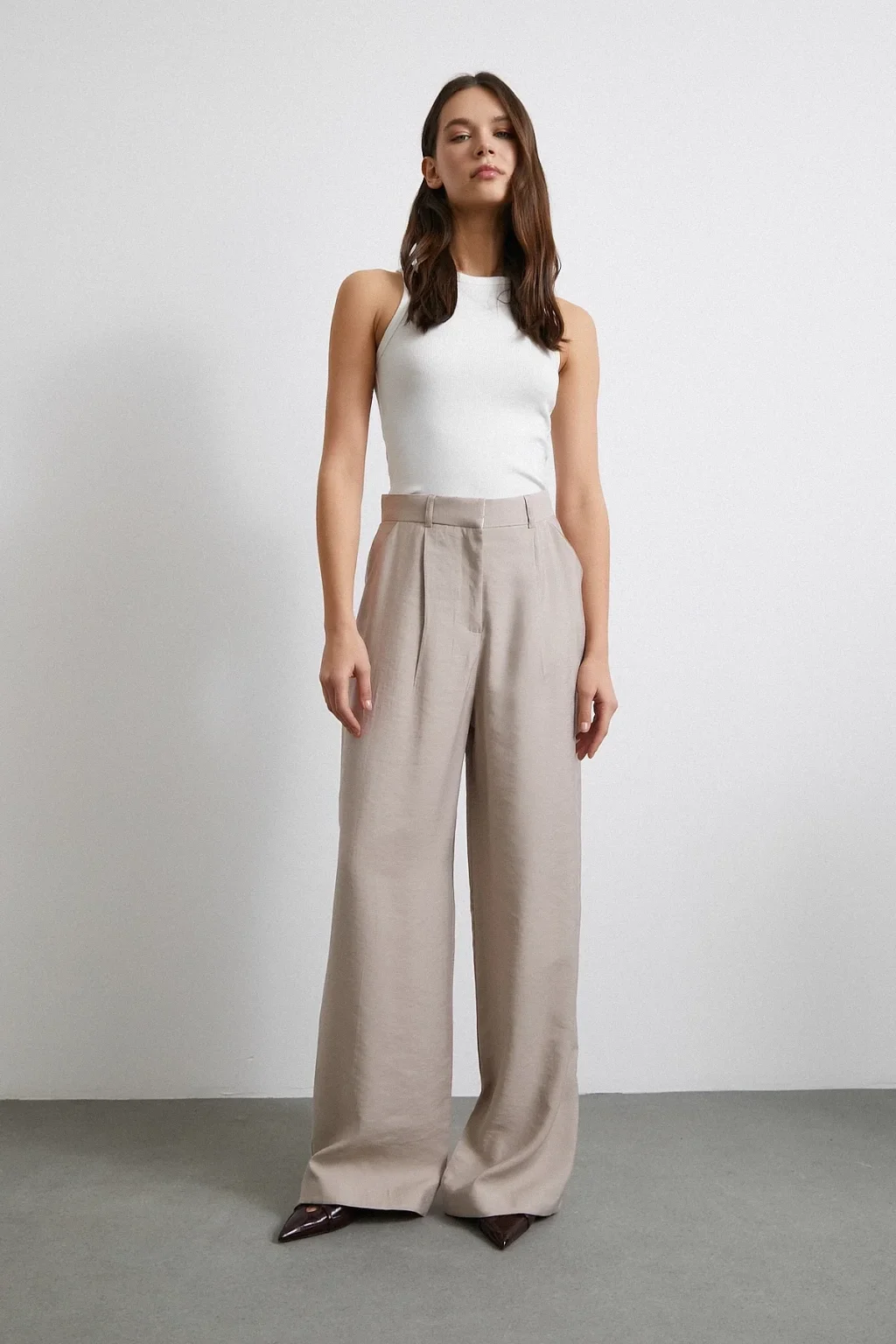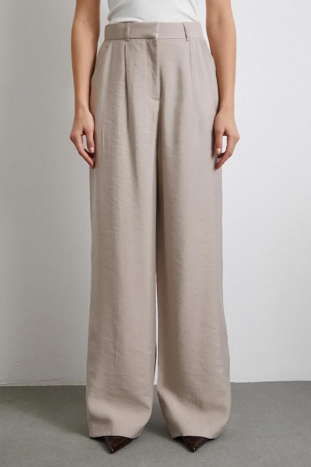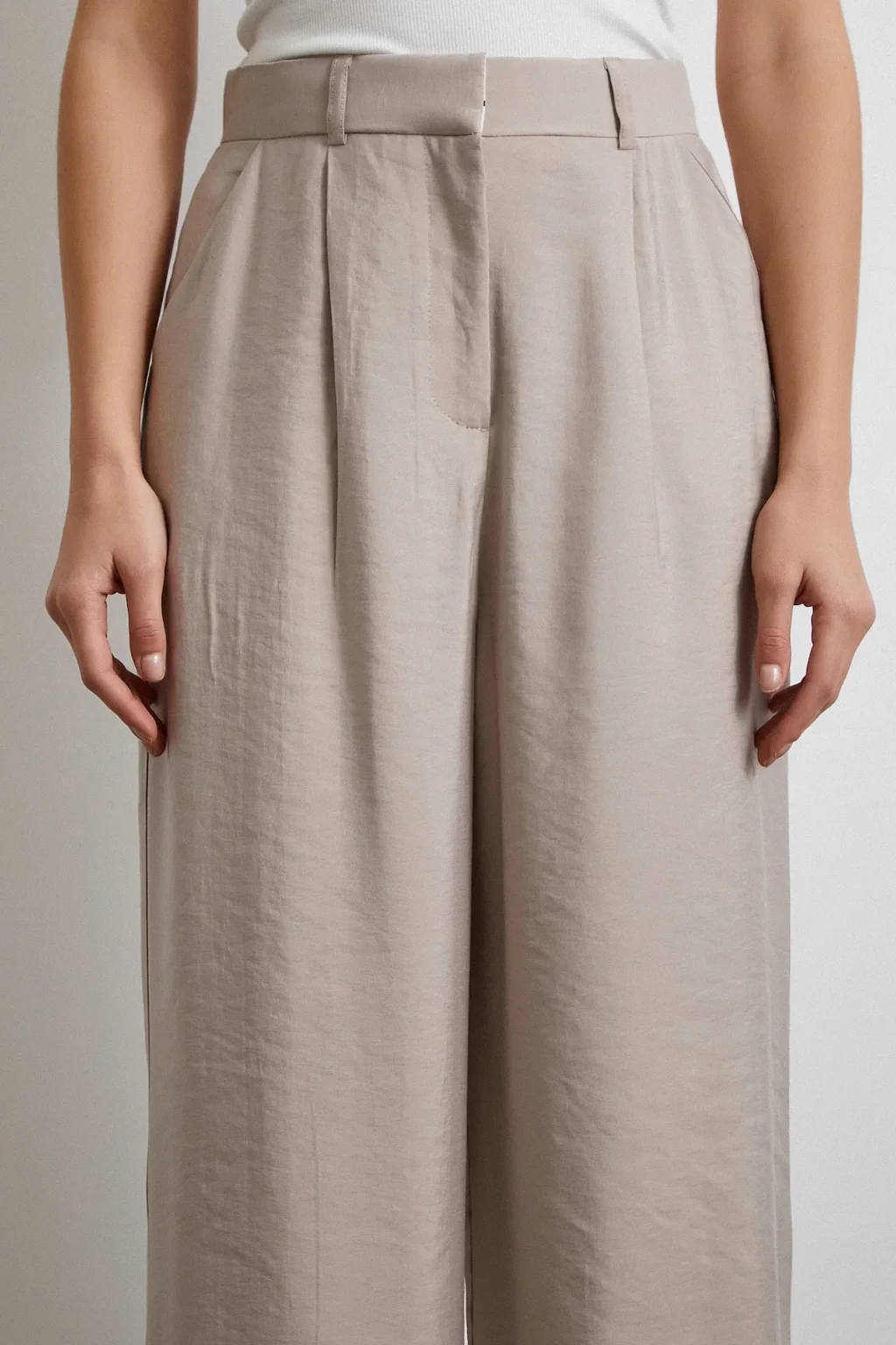 Yüksek Bel Pileli Palazzo Pantolon Gri