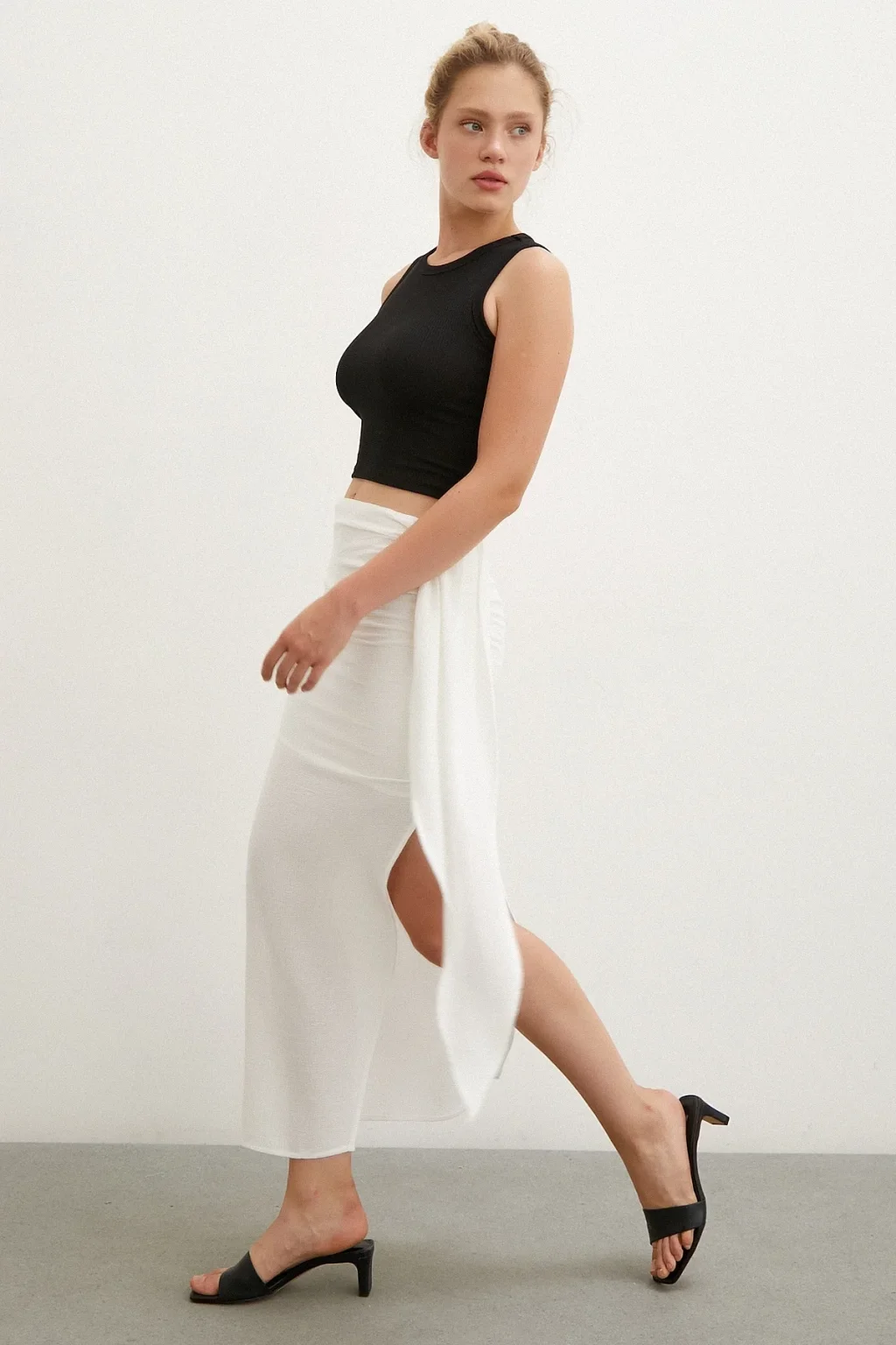 Önü Bağlamalı Yırtmaçlı Etek Ekru