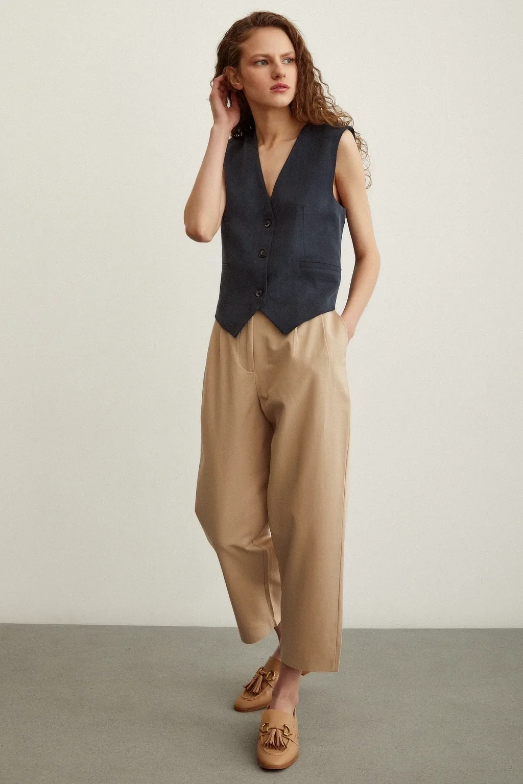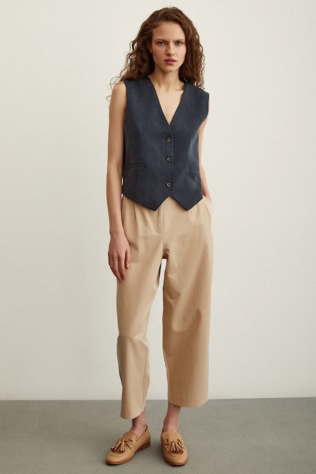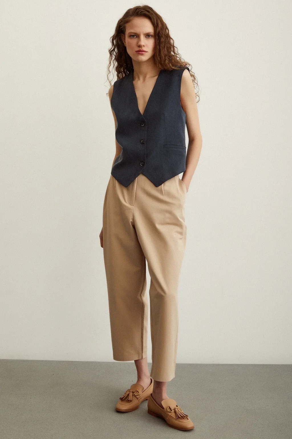 Bağcıklı Beli Lastikli Pileli Pantolon Taş
