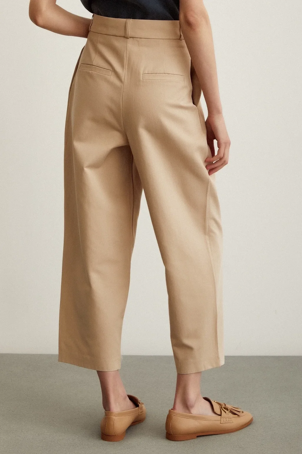Yüksek Bel Paça Detaylı Kemerli Pantolon Kahve