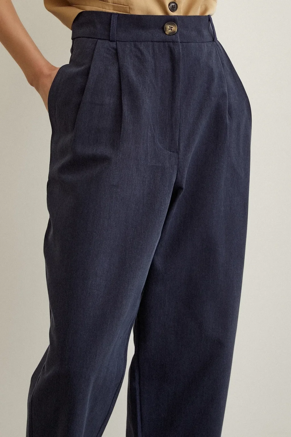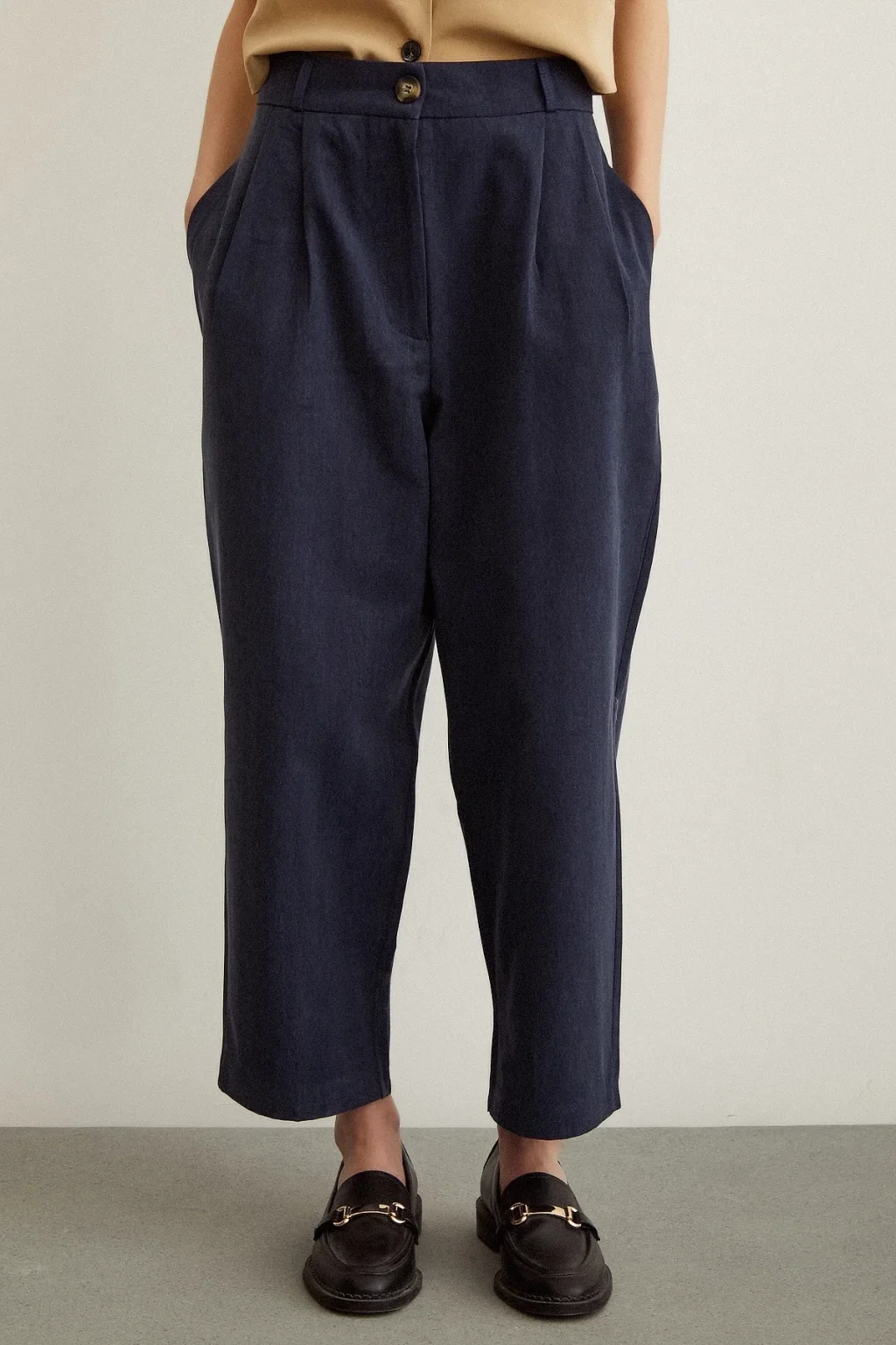 Yüksek Bel Pileli Palazzo Pantolon Gri