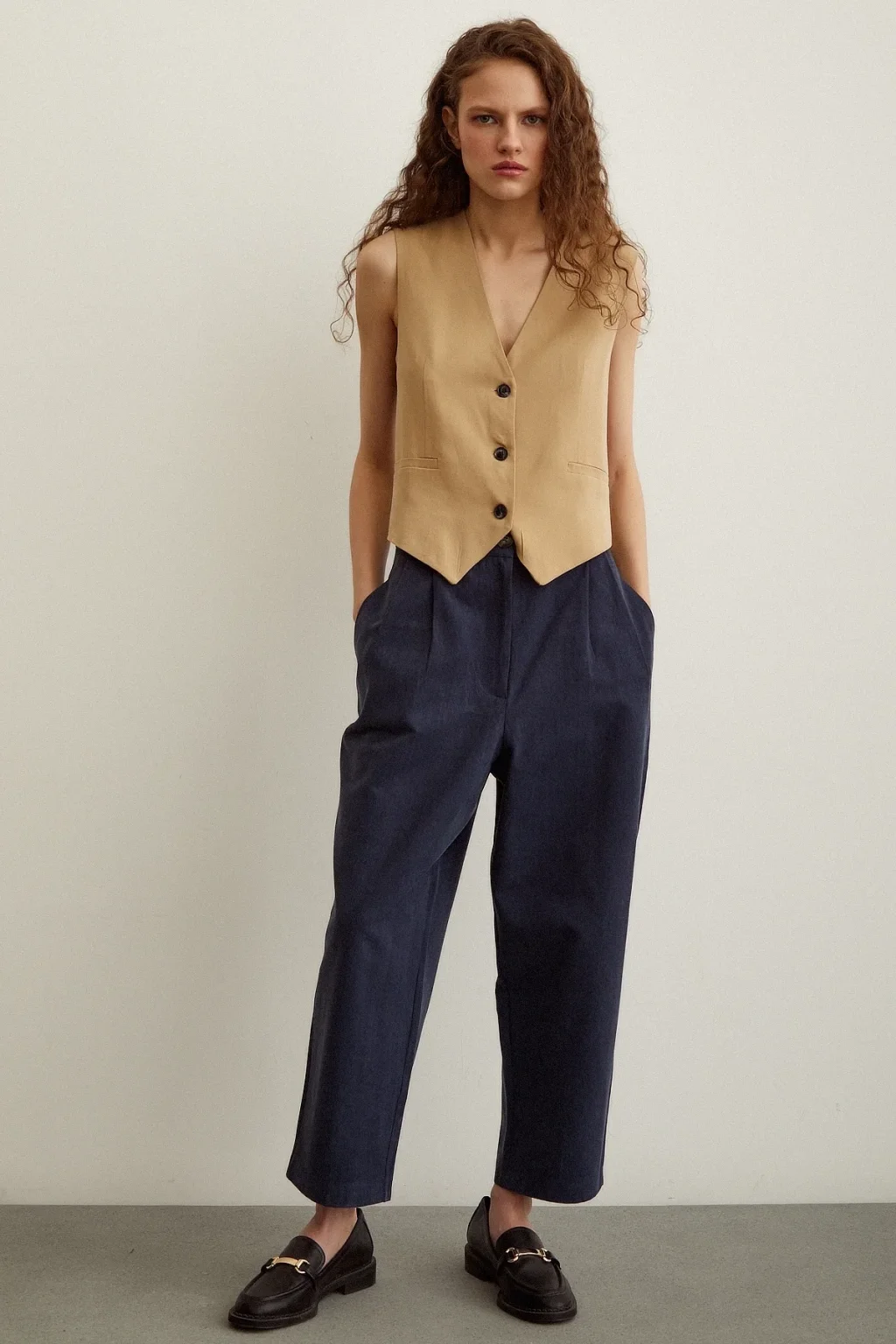 Bağcıklı Beli Lastikli Pileli Pantolon Taş
