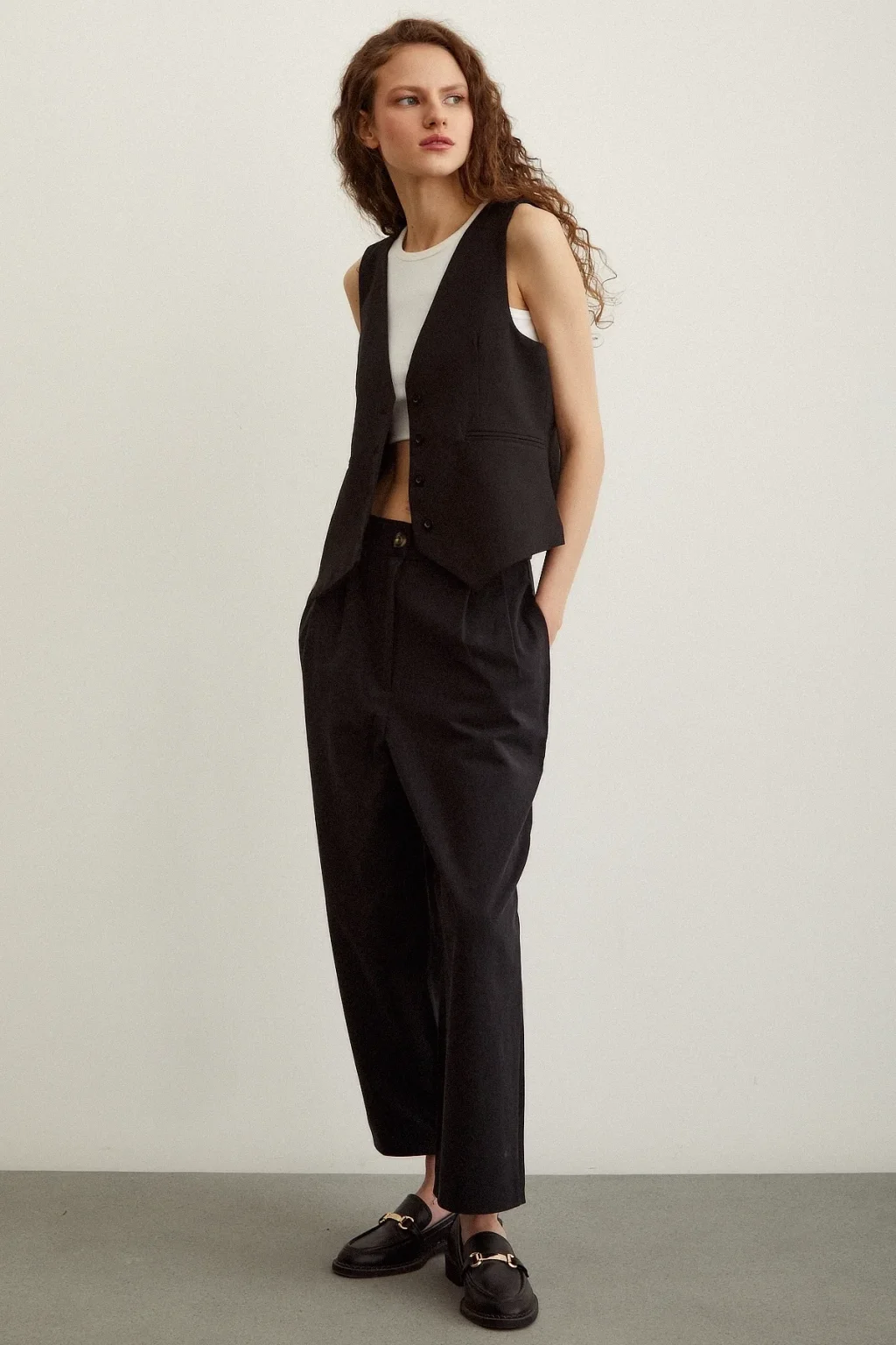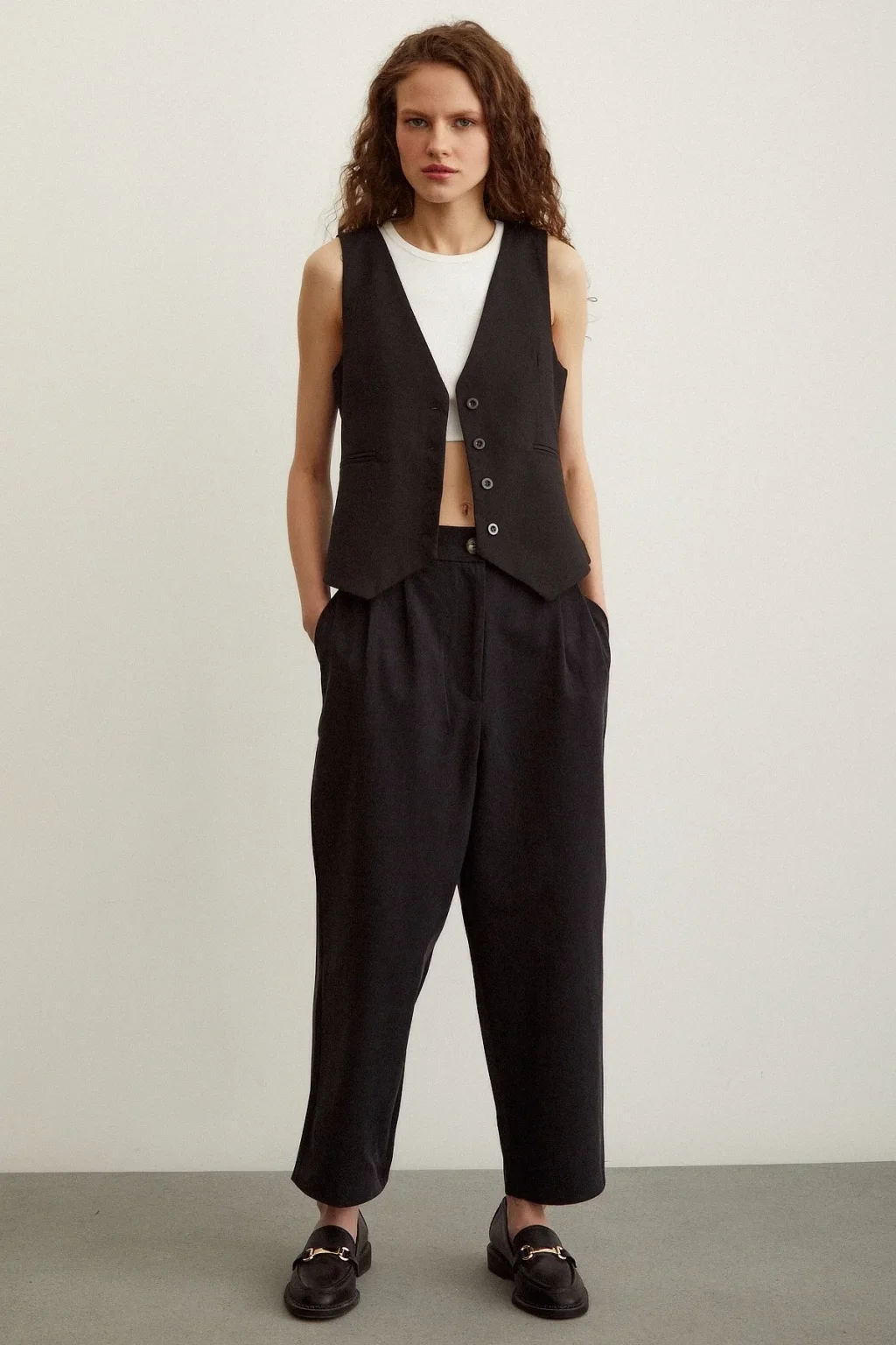 Önü Çift Pileli Pantolon Siyah