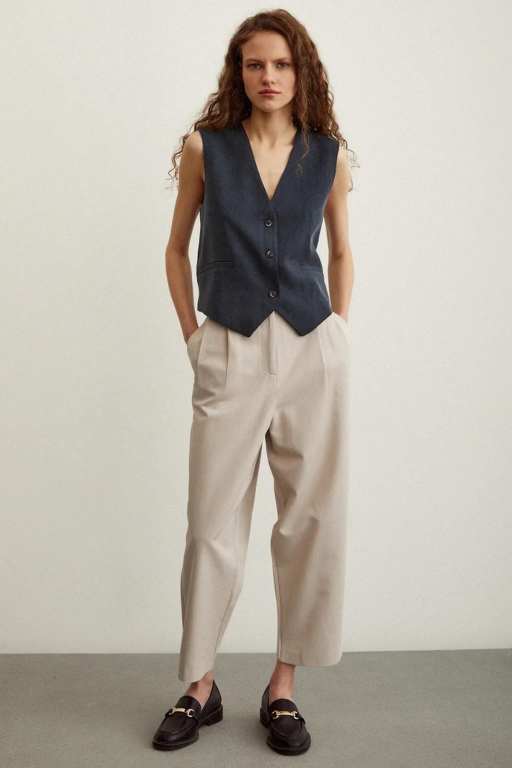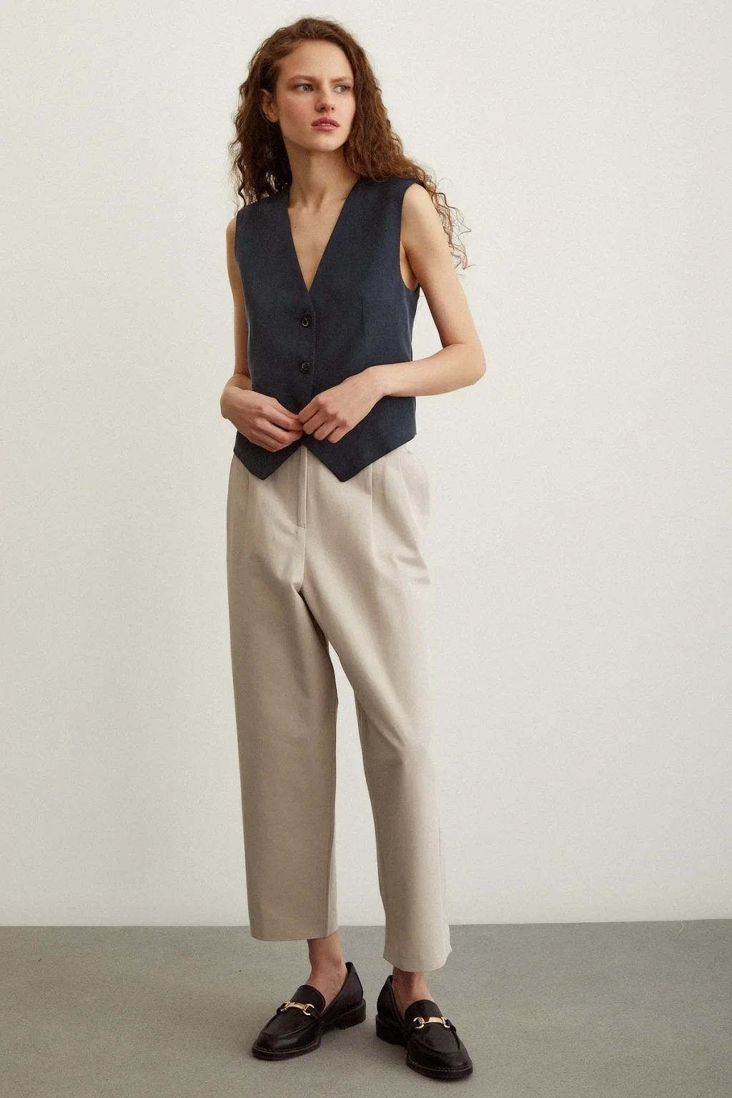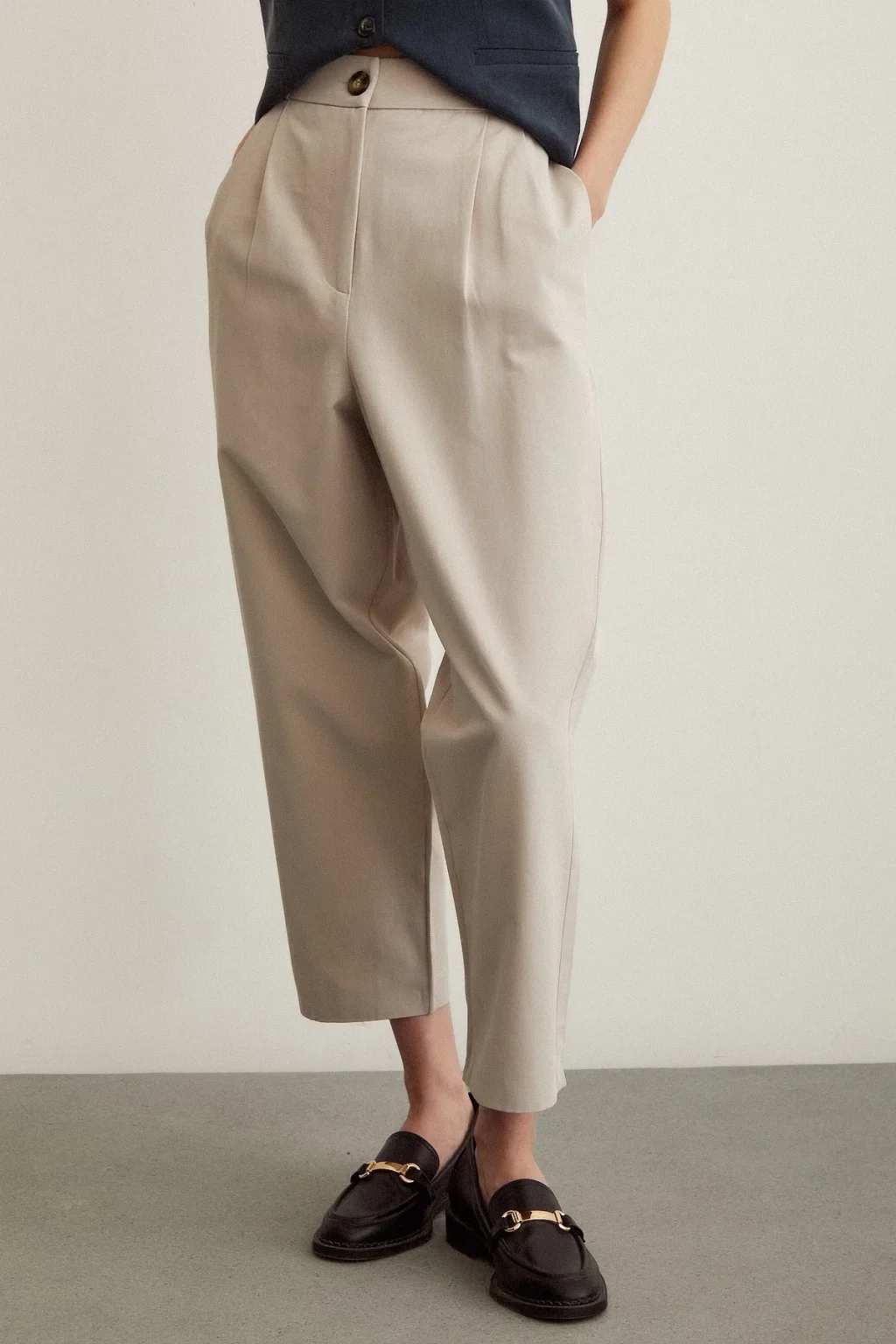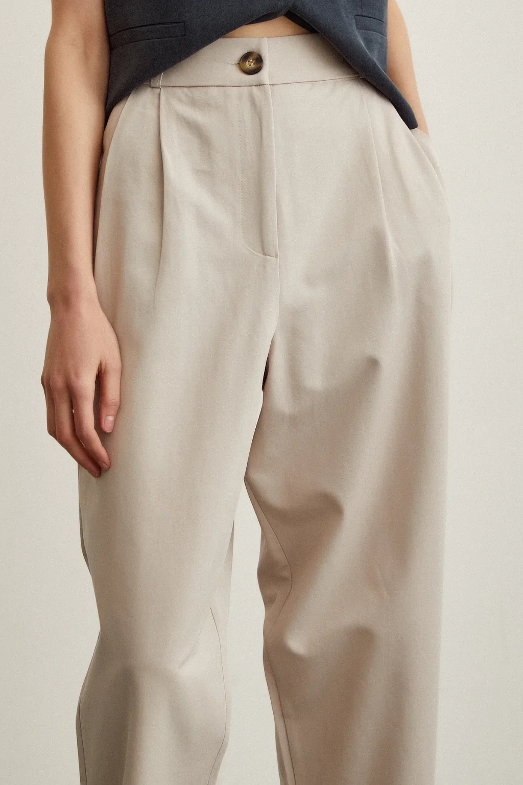Önü Çift Pileli Pantolon Taş