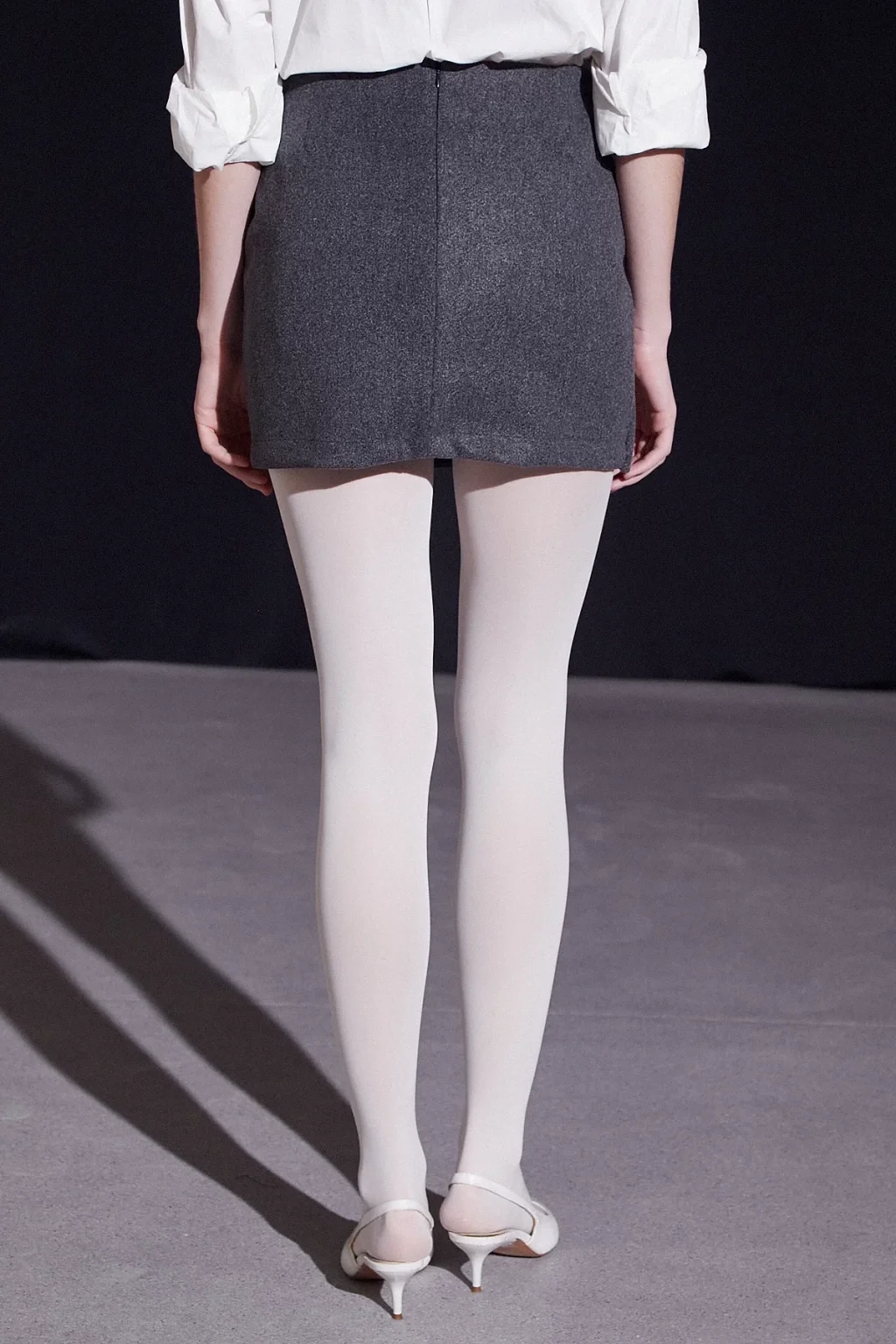 Önü Bağlamalı Yırtmaçlı Etek Ekru