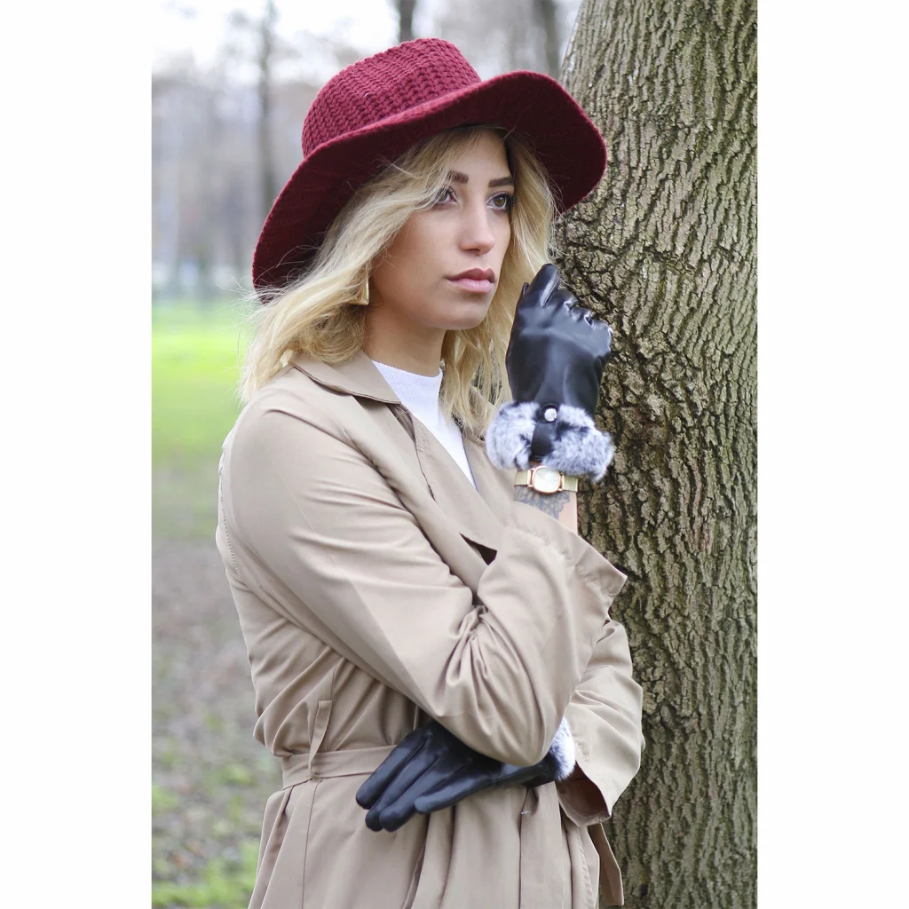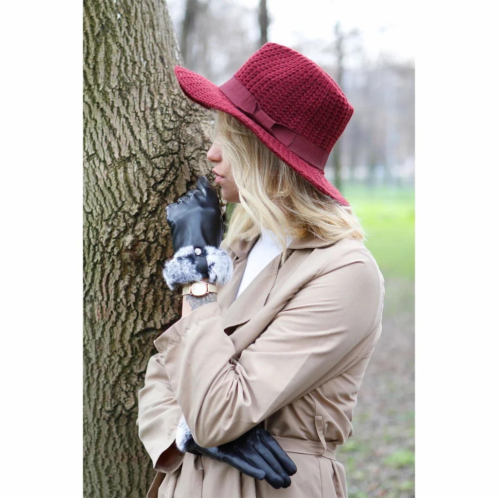 Kız Çocuk Geniş Kenarlı Kaşe Şapka Kırmızı 7168