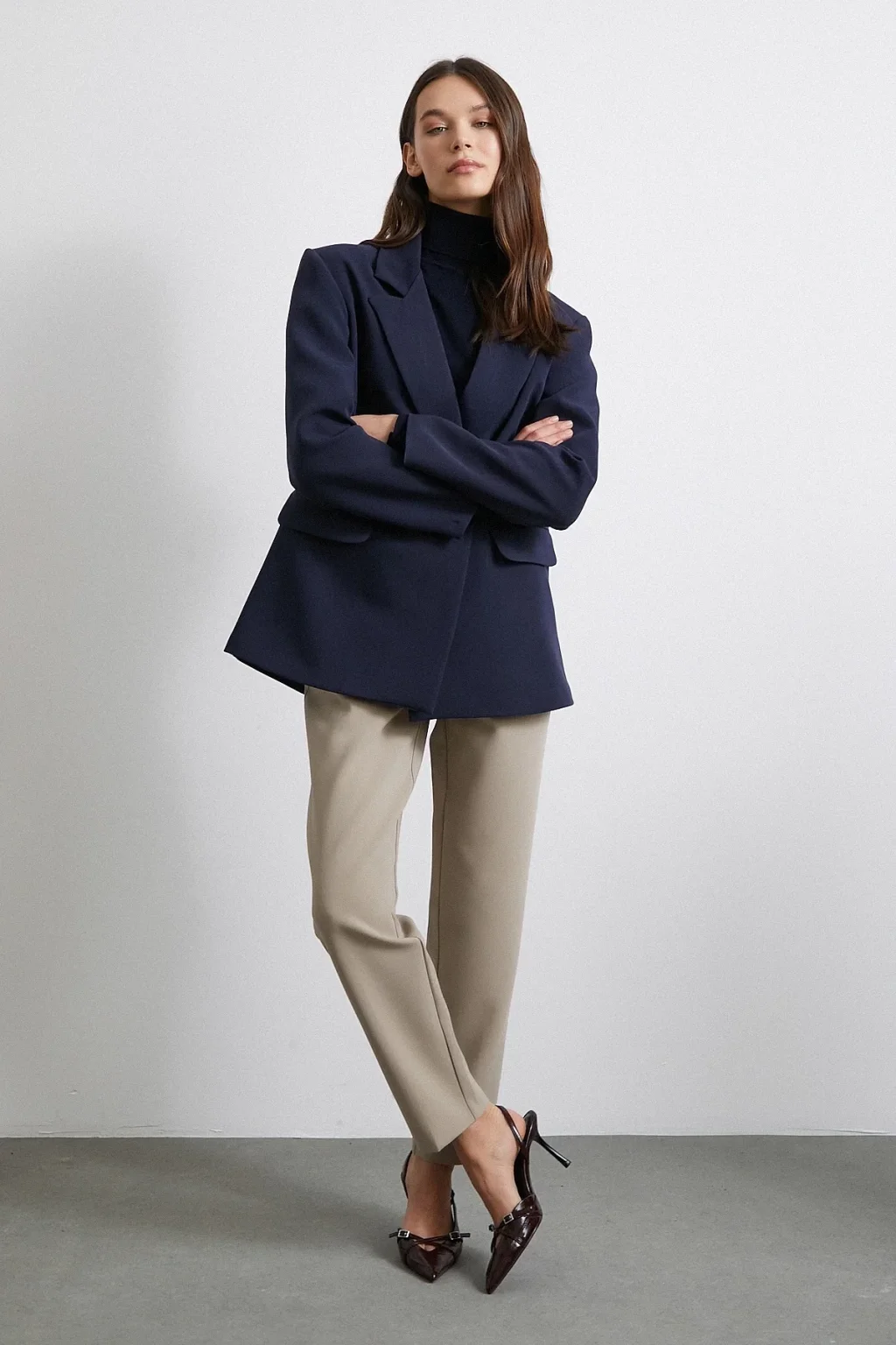 Yüksek Bel Paça Detaylı Kemerli Pantolon Siyah