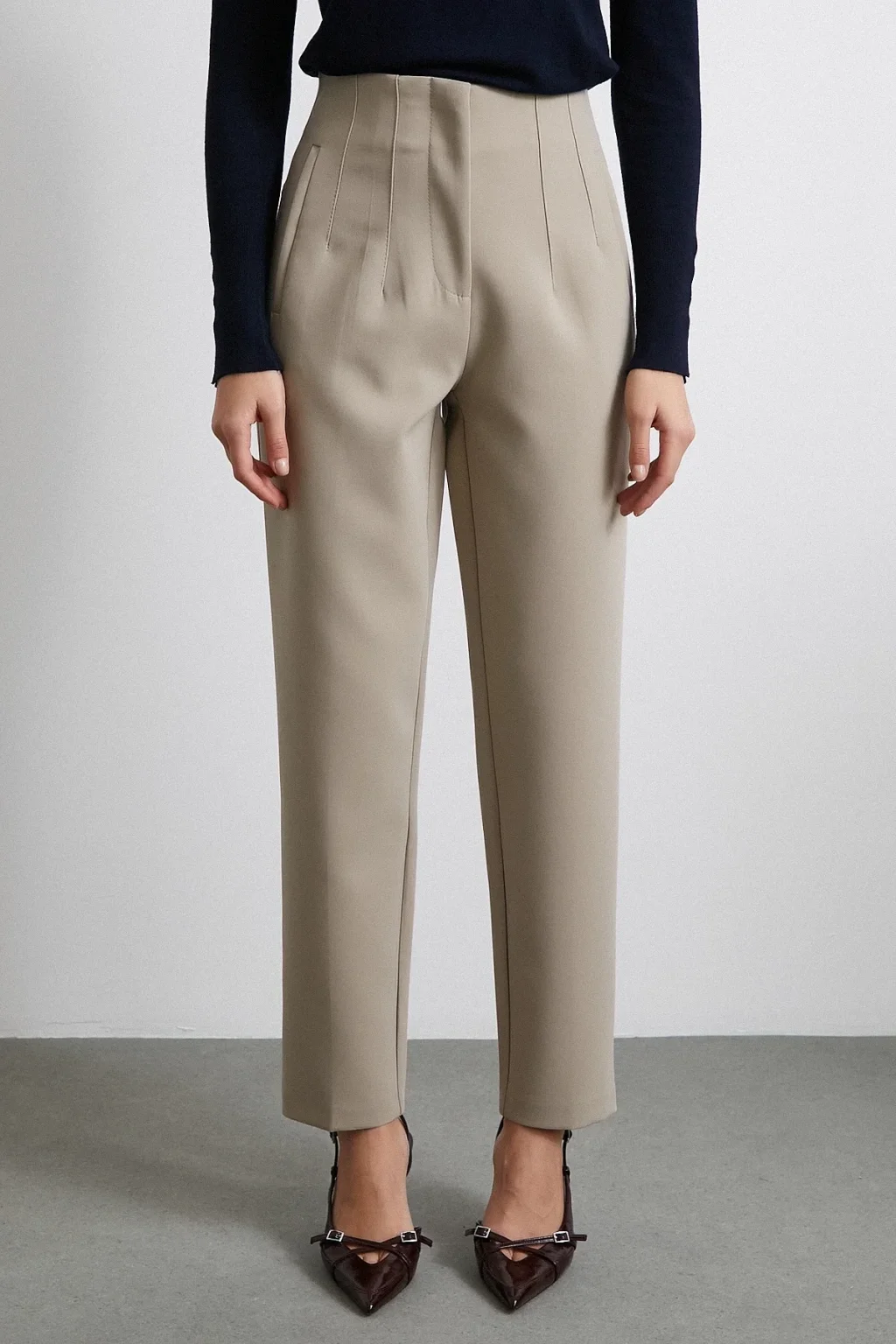 Yüksek Bel Pileli Palazzo Pantolon Gri